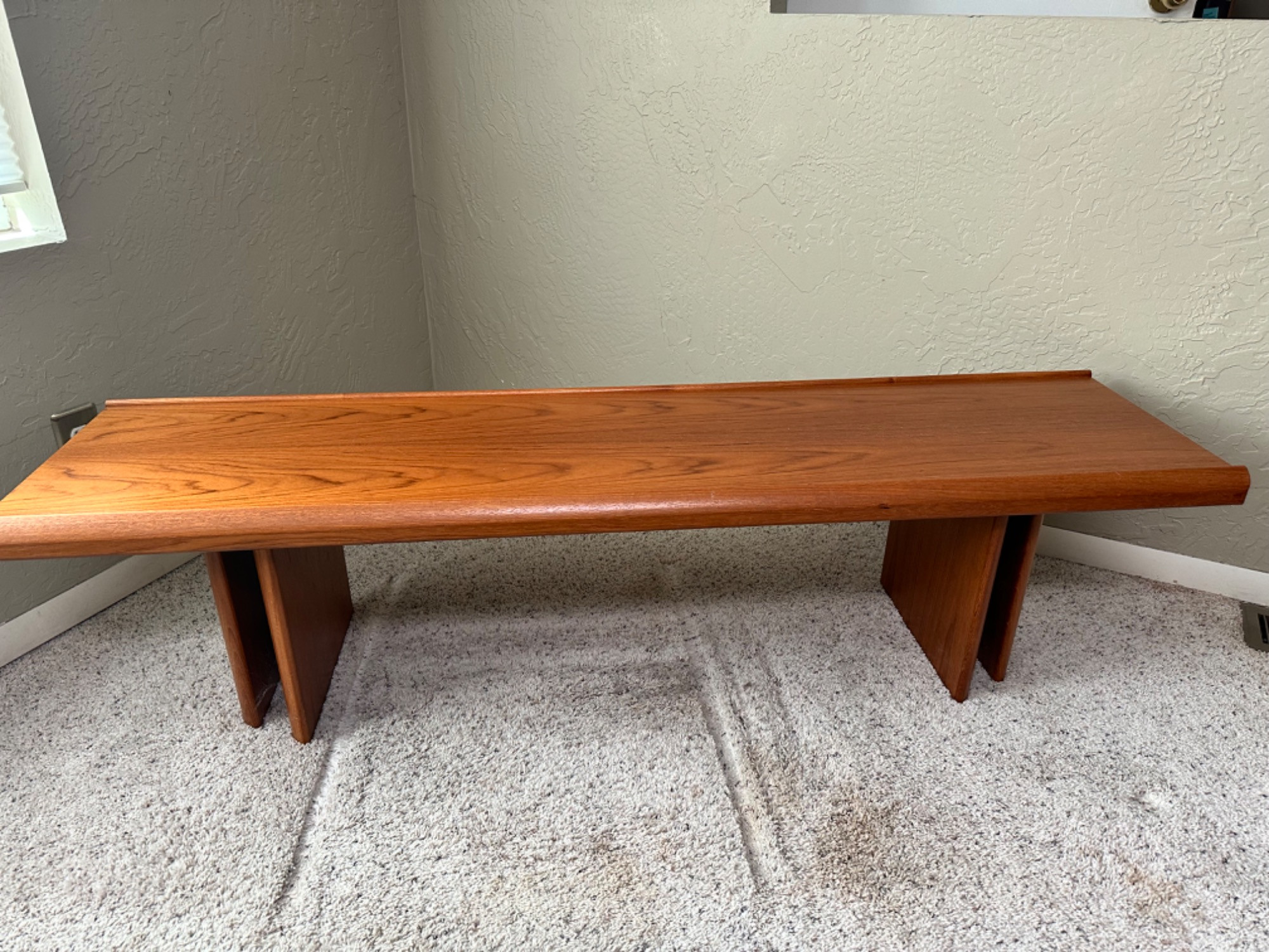 Danish Teak trimmed bench or table. Brand not found. Scan-Design origin. This is a furniture piece with weight. Bench-60" Long x 15 Tall x 15.5