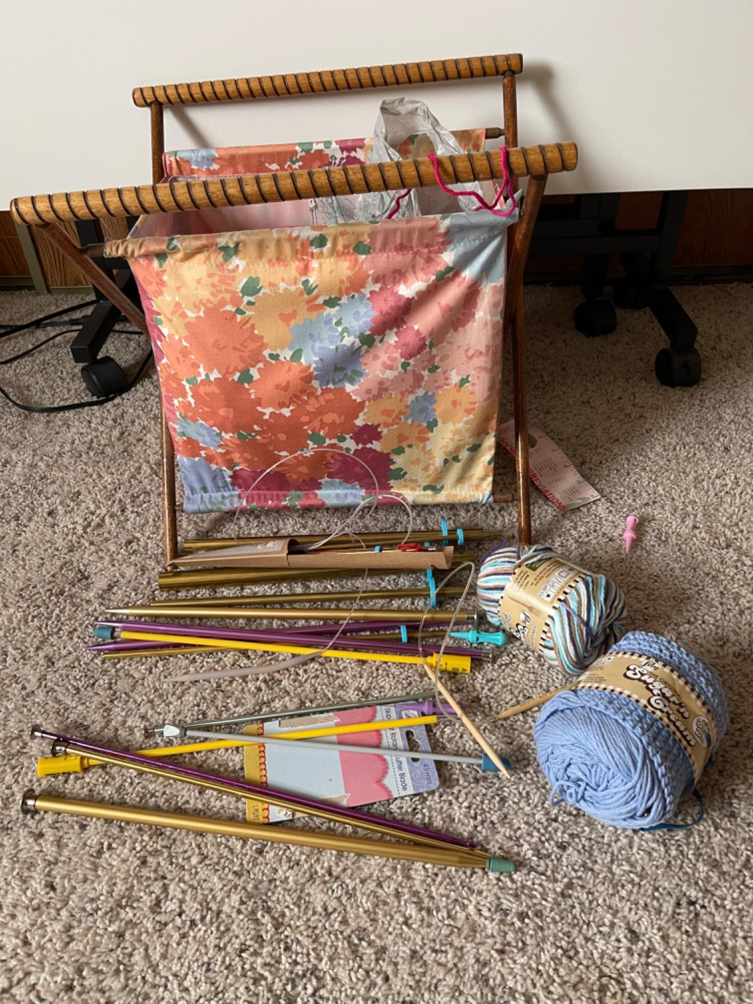 Lot # 81 - Knitting Supplies and Holder Included