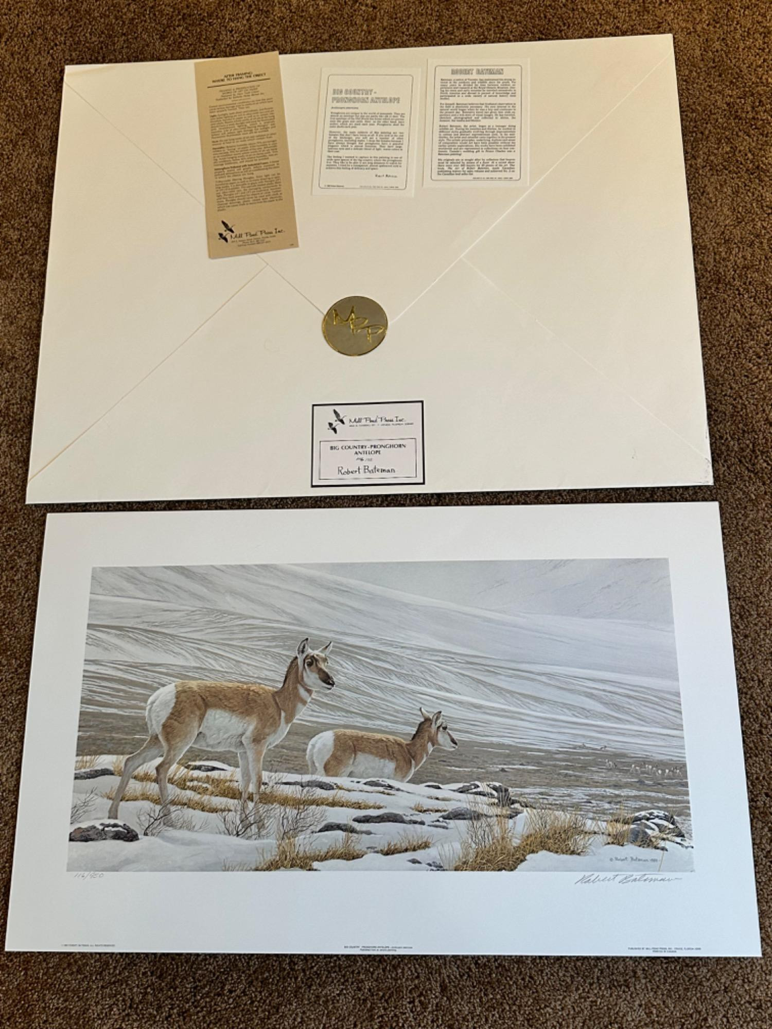 Robert Bateman Print-"Big Country-Pronghorn Antelope" 116/950 Limited Edition signed and numbered. All rag paper. Original pencil signed print. 18 x 29.5