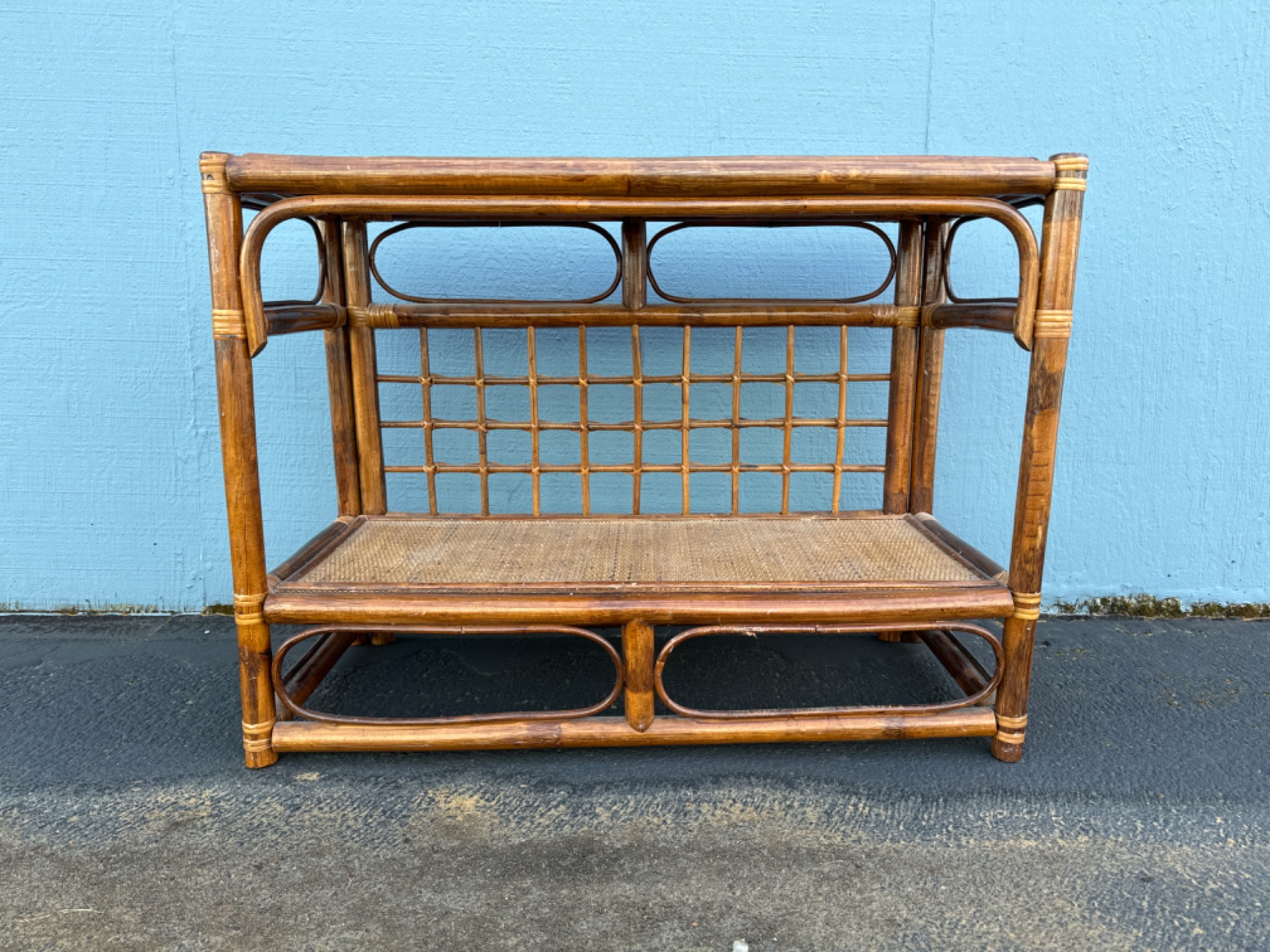 Vintage Boho Rattan Shelf Unit - Bookcase - Table Measures: 36.5 x 16.5 x 27" Has general wear - please see photos Overall good condition, cane is in good condition.
