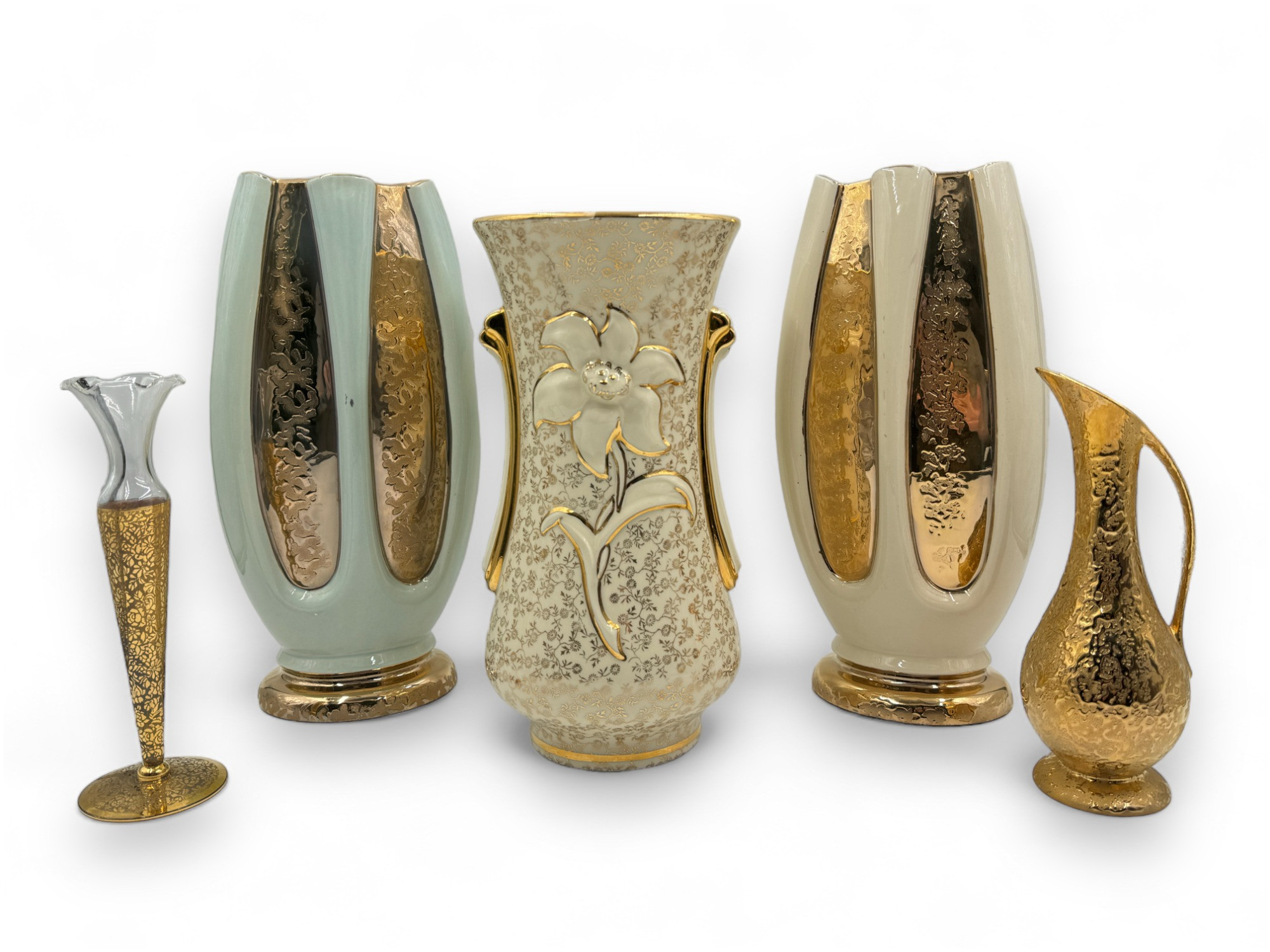 Lot # 28 - Mid Century Gold Accented Ceramic & Glass Decor - Savoy Vases