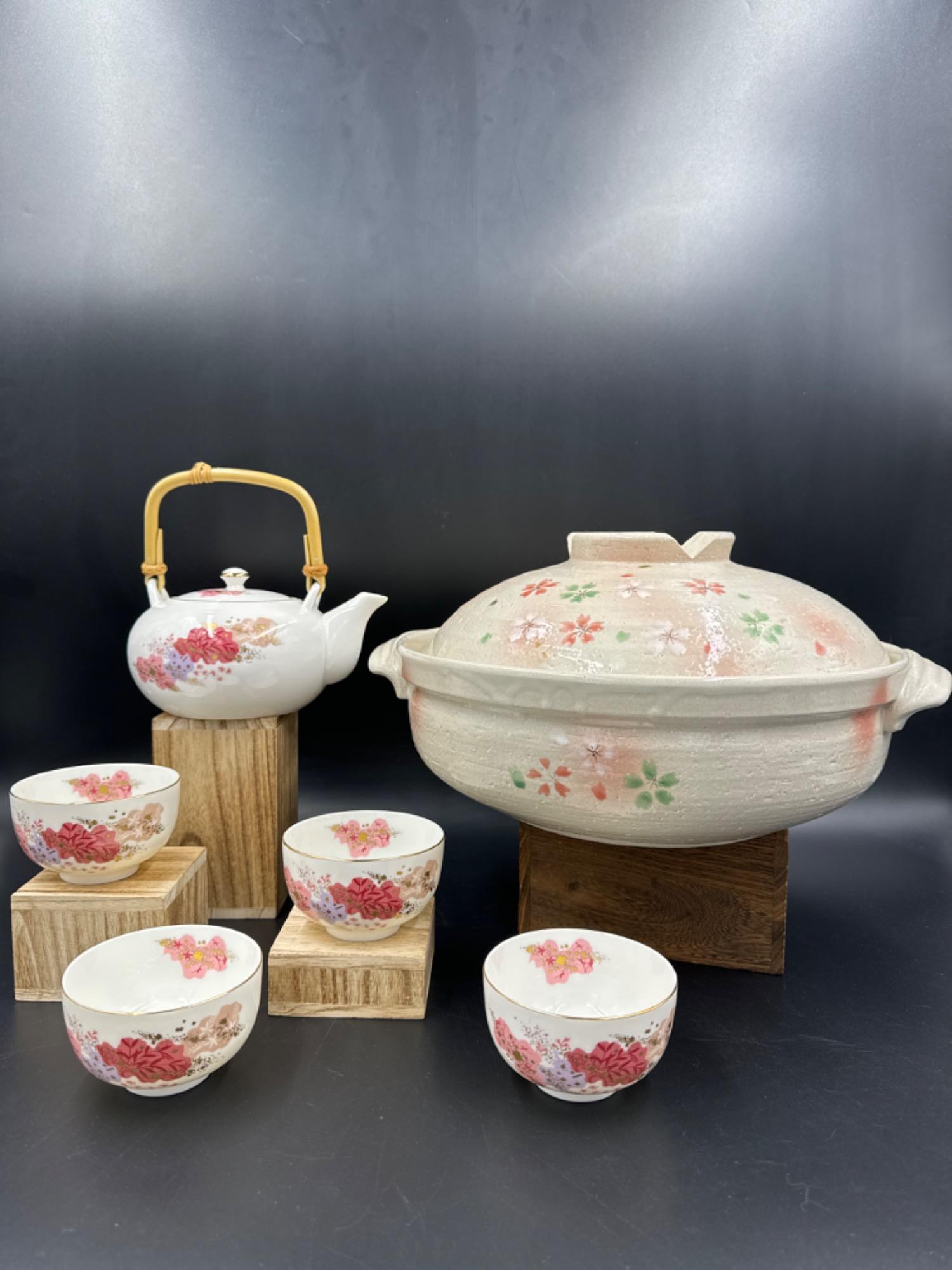 Lot # 140 - Cherry Blossoms Vibes - Banko Ware Donabe Pot + Teapot & Cups