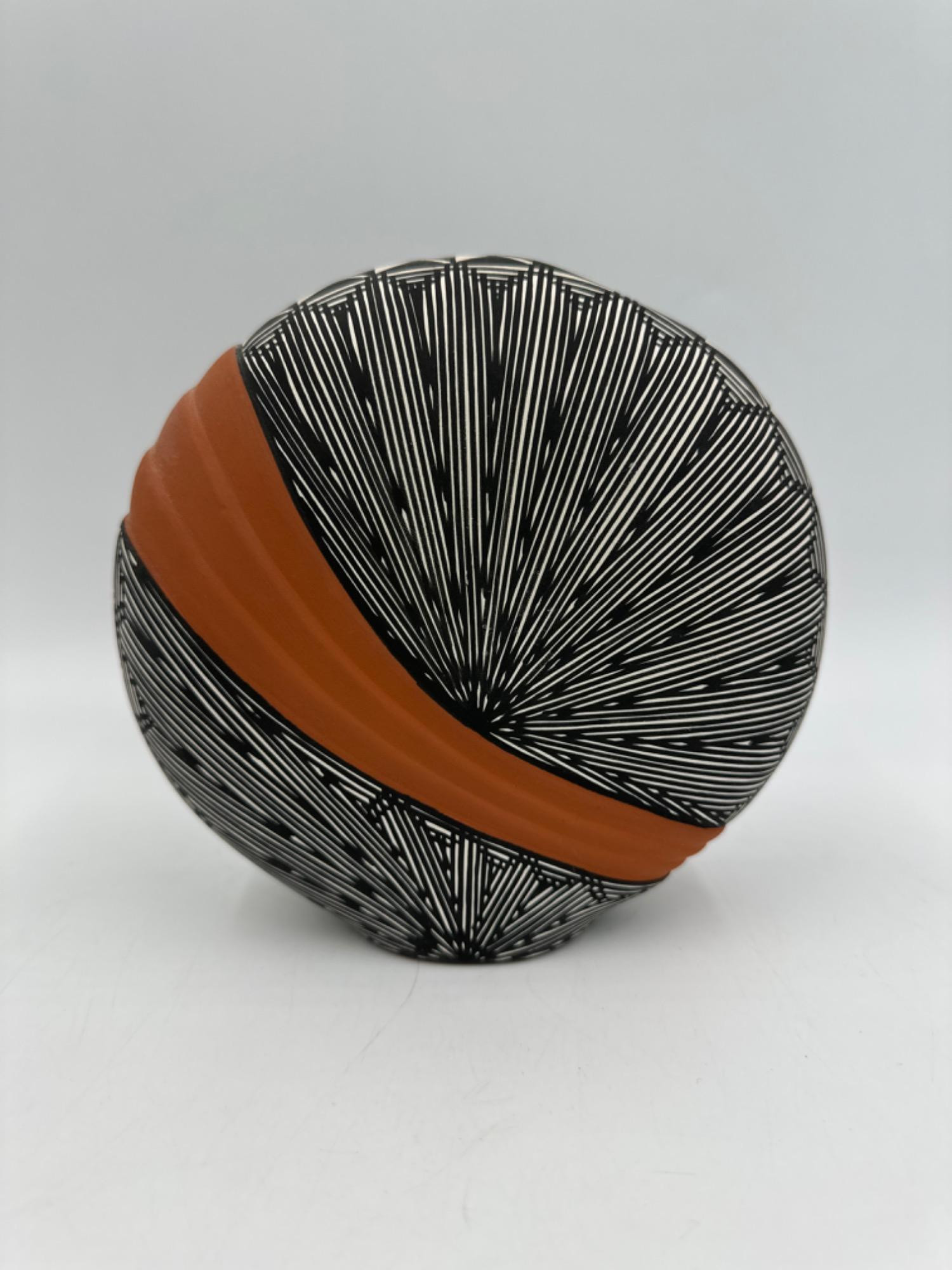 Signed D. Vallo Acoma Pueblo Geometric Fine Line Vase Measures: 6”T Has scuff on back