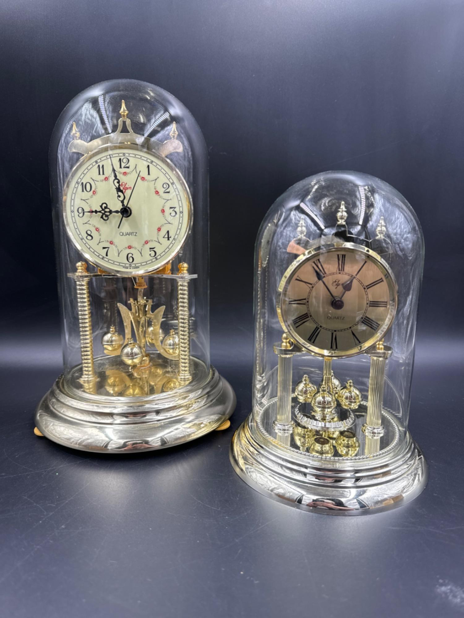 Vintage Elgin Glass Dome Clocks 9.5" & 12.5” Untested Both have battery acid damage to battery terminals and exterior pieces Not shippable