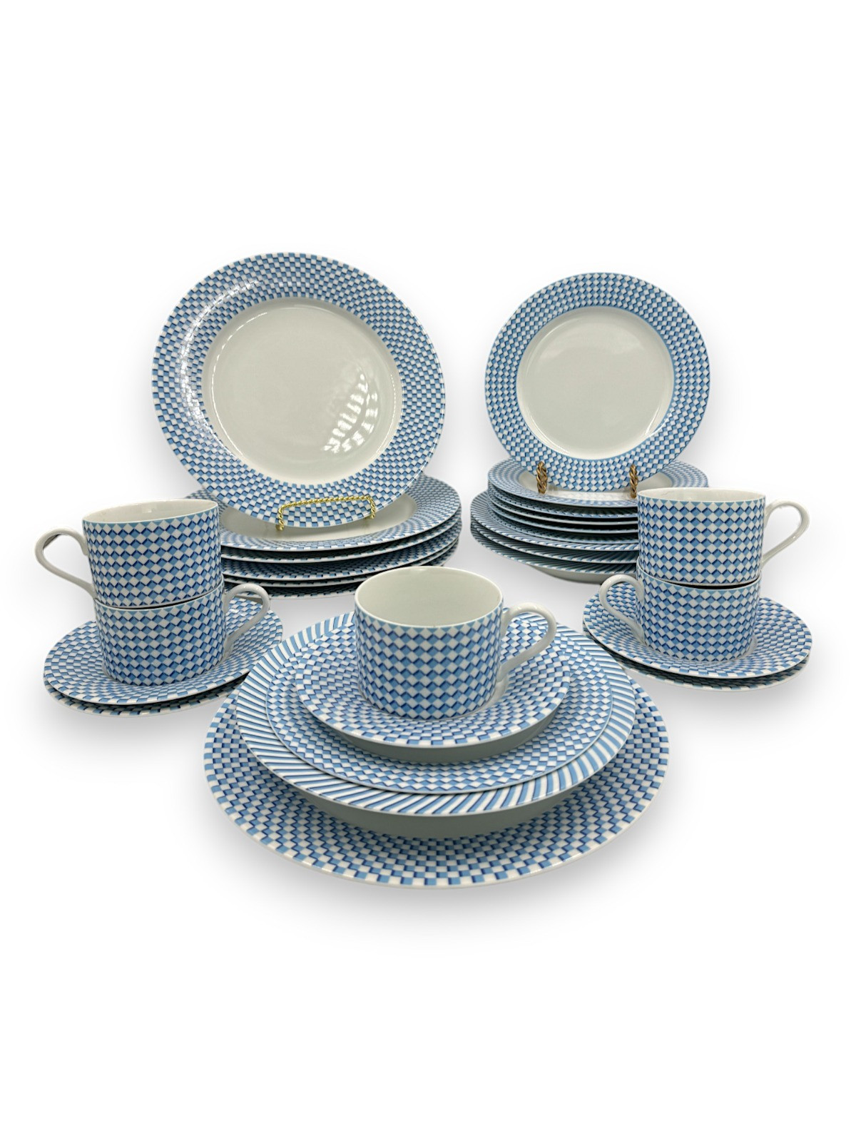 1998 Galleria Fine China 'Zenith Blue' - 33pcs - 4 Place Settings (7) 10.75” (7) 8” (4) 9 1/8” bowls (5) cups and saucers All are in great condition