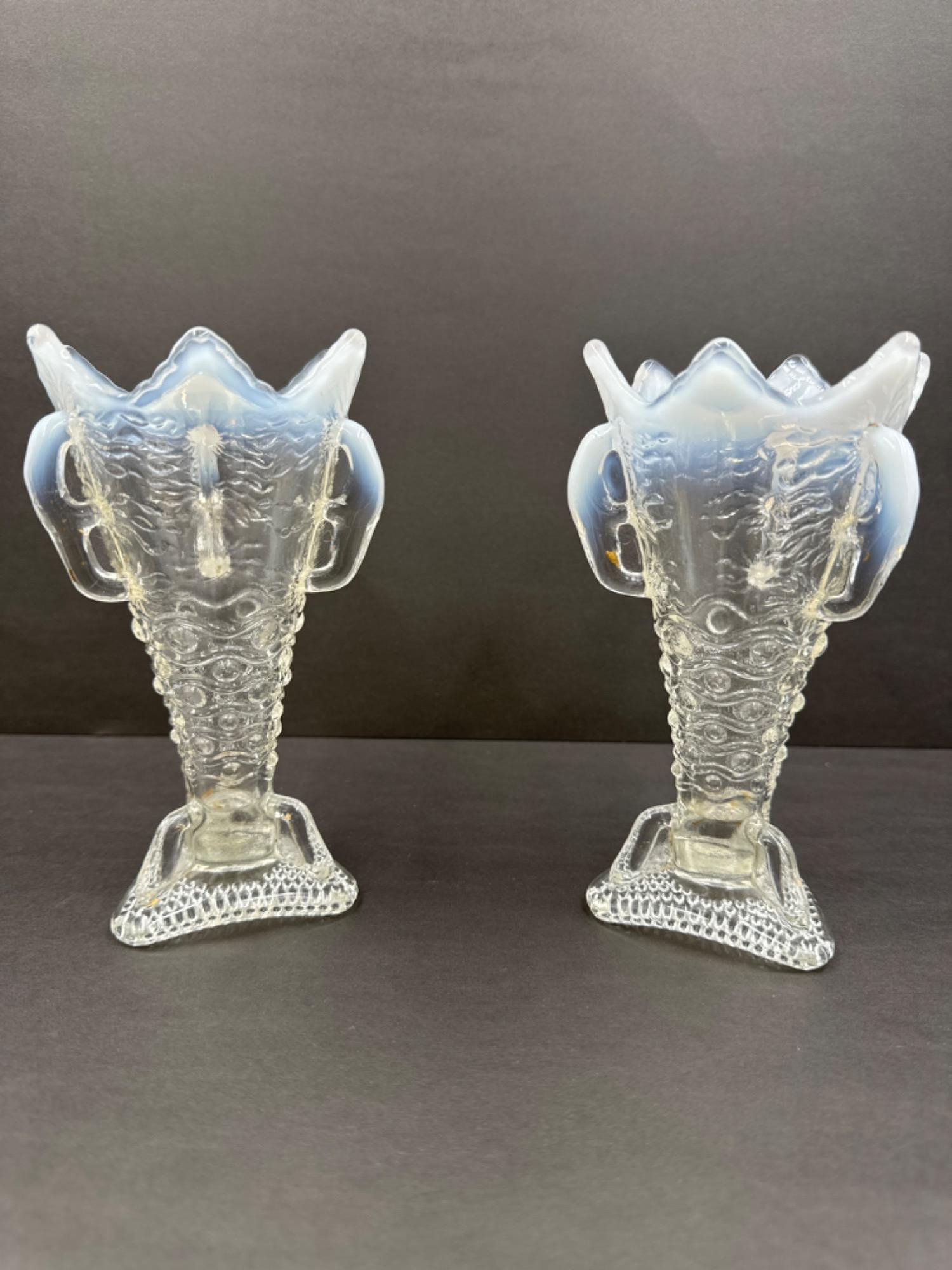 Lot # 199 - (2) Antique Jefferson Glass Clear White Aurora Borealis Vases