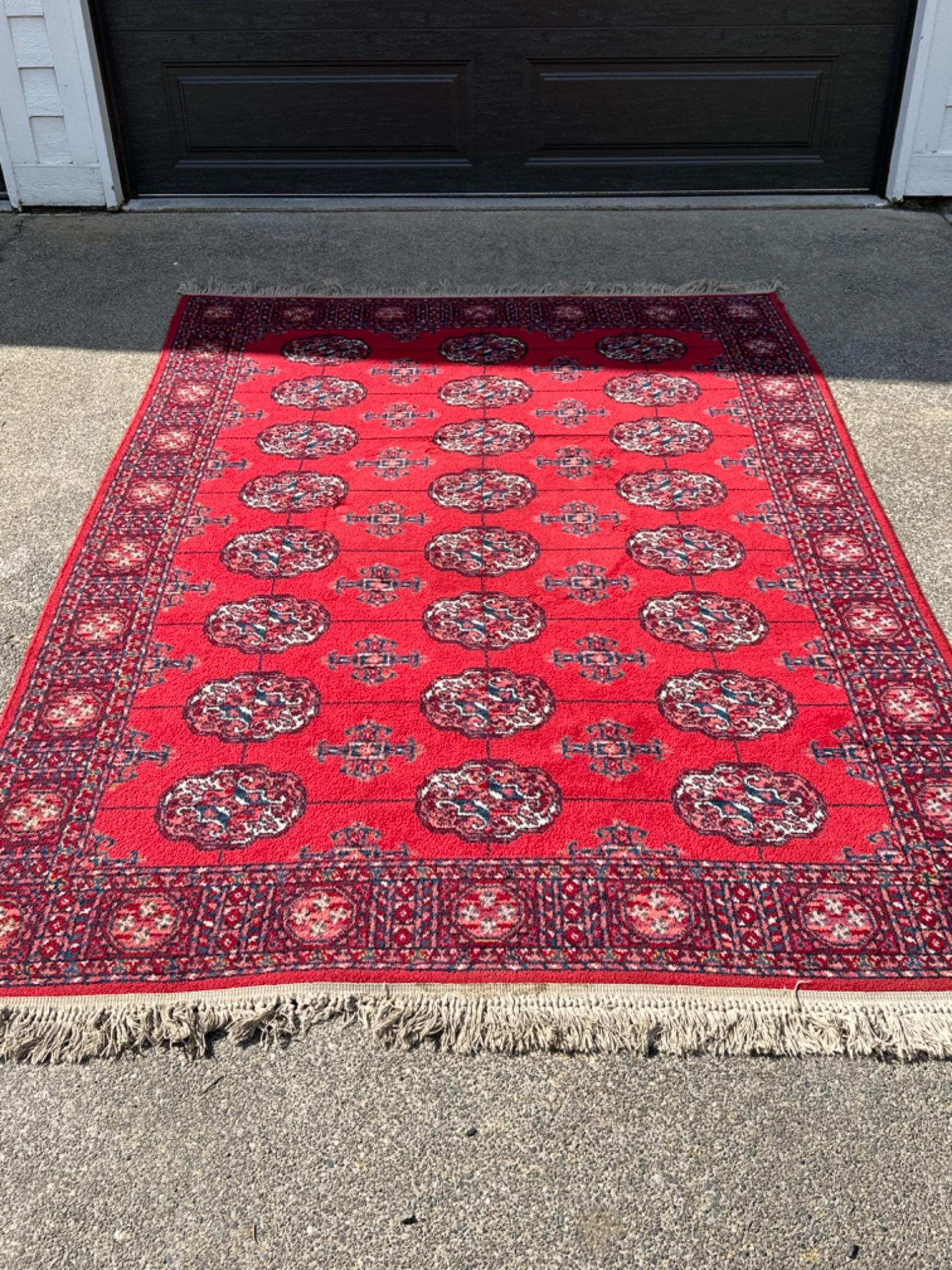 Vintage Red Area Rug 104” x 72” *needs cleaning, please note photos carefully for small imperfections, but does not detract from overall use