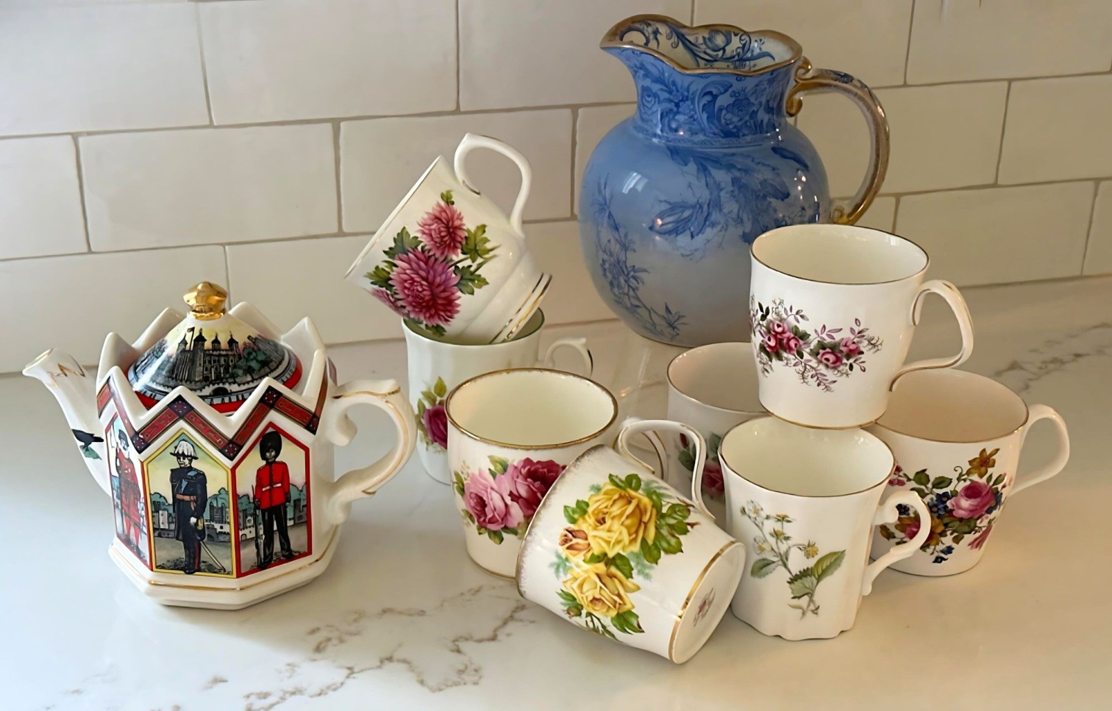Vintage English Sadler Teapot, Doulton Pitcher & Royal Albert Teacups