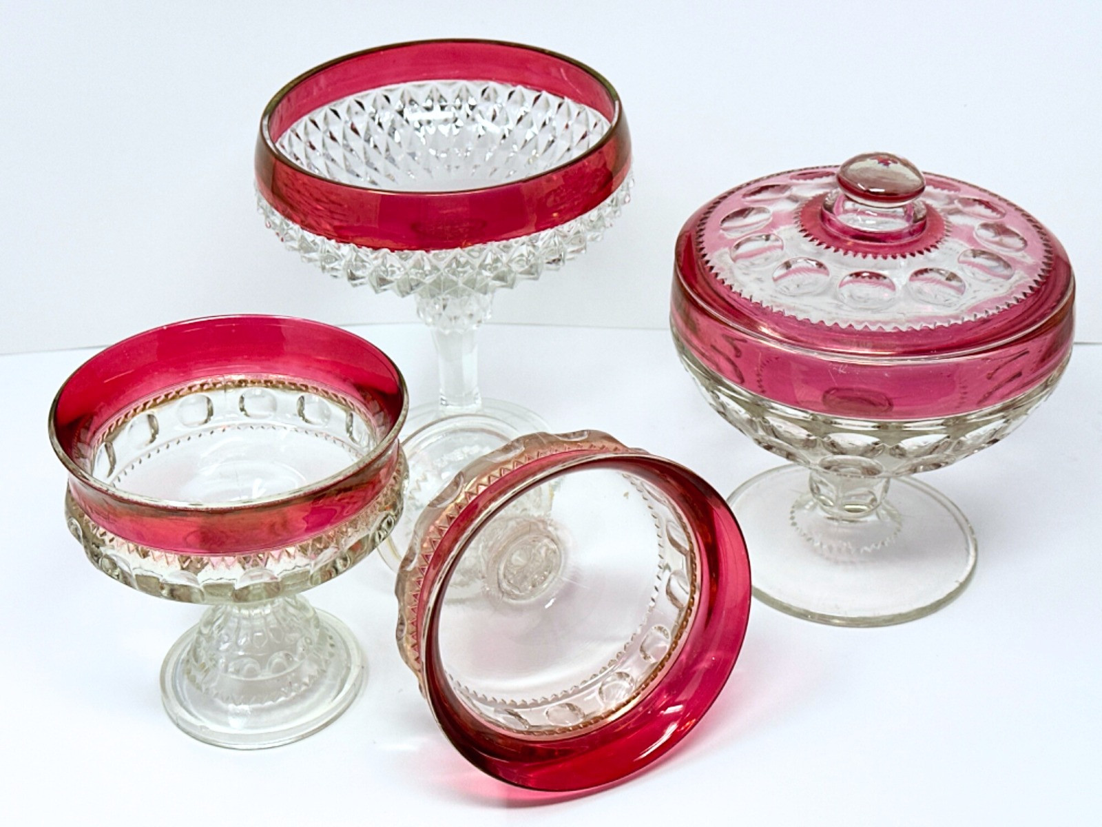 Lot # 91 - Vintage Ruby Red Compote & Candy Dishes
