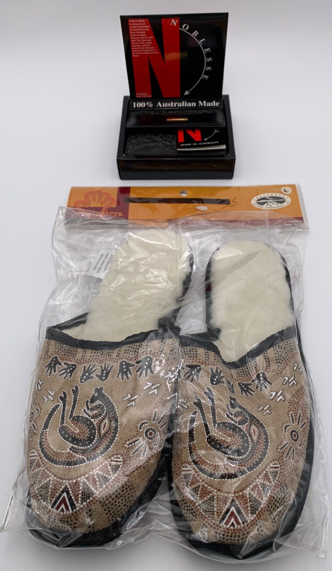 Lot # 7 - Aussie Kangaroo Wallet & Sheepskin Slippers - New