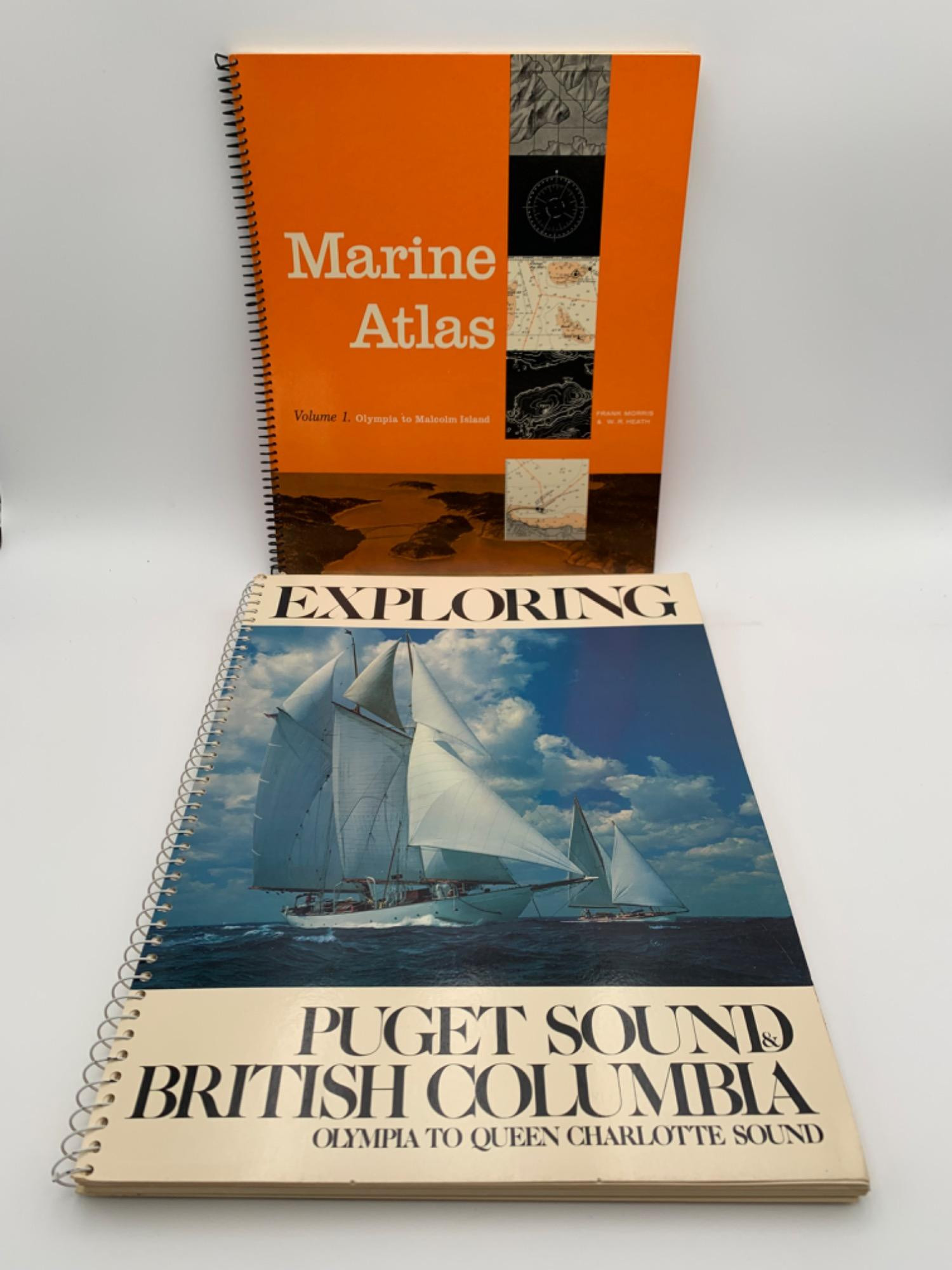 Two spiral bound marine atlases for the local area in large format. Gorgeous to look at & study even if you never go out on the water. Both in very good shape, particularly given they are nearly 50 years old. No marks or writing noted. EXPLORING PUGET SOUND & BRITISH COLUMBIA - OLYMPIA TO QUEEN CHARLOTTE SOUND by Stephen E. Hilson. Softcover. 1975, Van Winkle Publishing (Holland, MI) 107 pages plus index. Measures 16" H x 12.5" W. MARINE ATLAS - VOLUME 1 - OLYMPIA TO MALCOLM ISLAND by Frank Morris & WR Heath. Softcover. 1975, Bayless Enterprises (Seattle, WA) 51 pages.