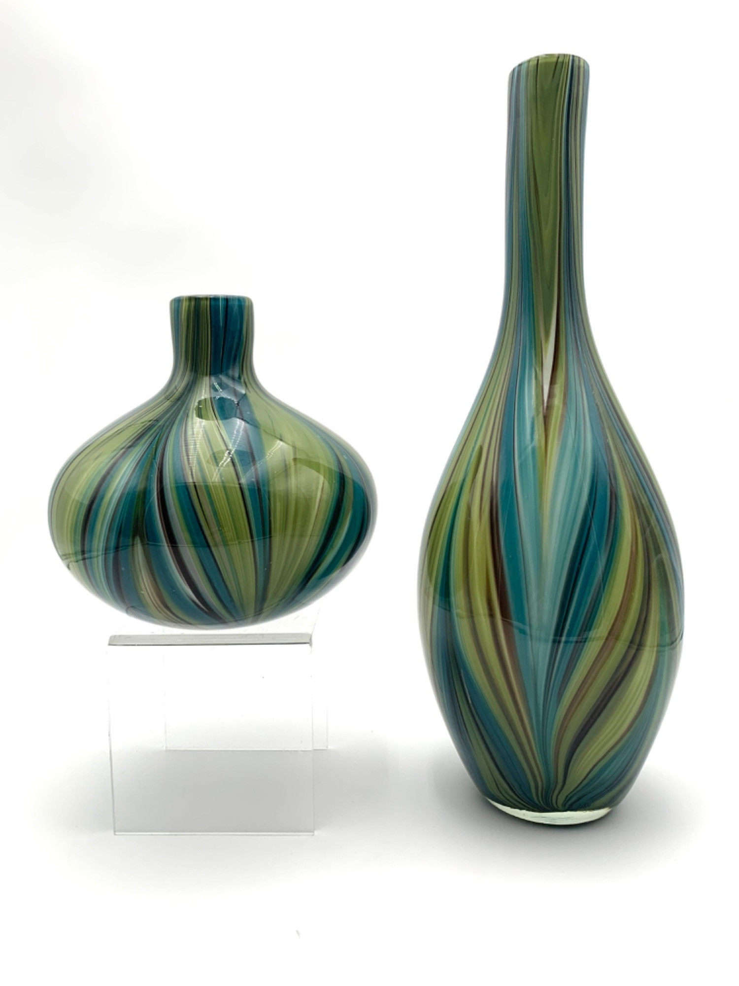 Lot # 91 - Swirled Glass - Green & Teal Vase Pair - Gorgeous