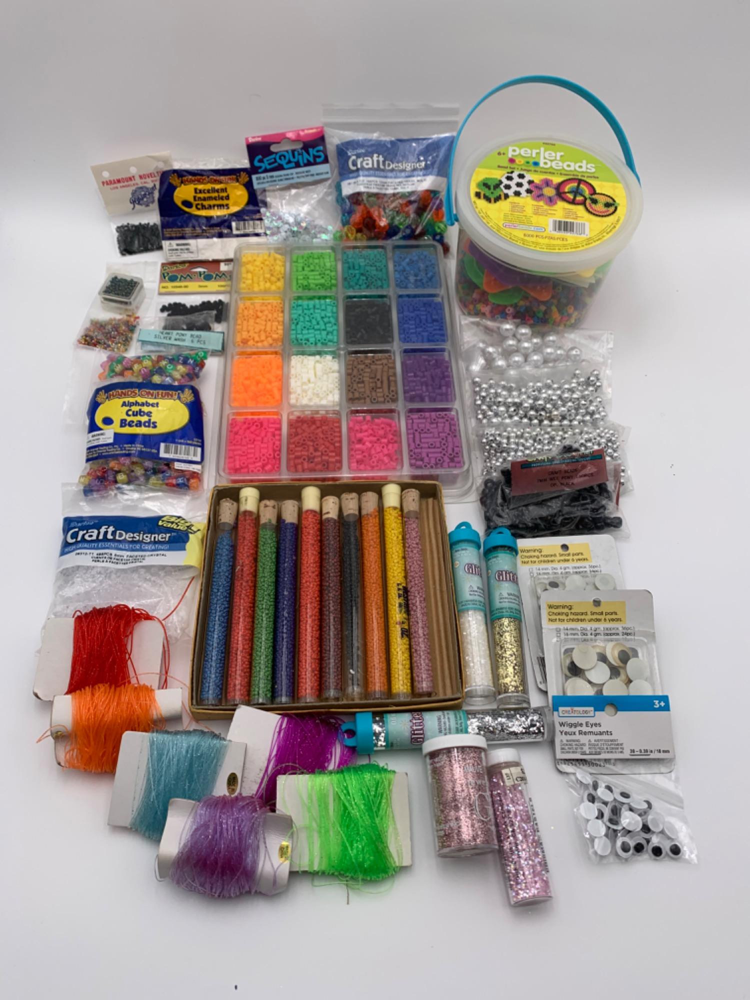 Everything you see in the first picture is included. Some of the items are intended for children (the Perler beads) while others are only for adults (the vintage seed beads in the clear tubes), Great way to build small muscle coordination in kids and realize how bad your eyesight has become as an adult - those seed beads are REALLY small! More vintage kids' activities/toys in Lot #28 Lot #51, Lot #71, Lot #74, & Lot #89.
