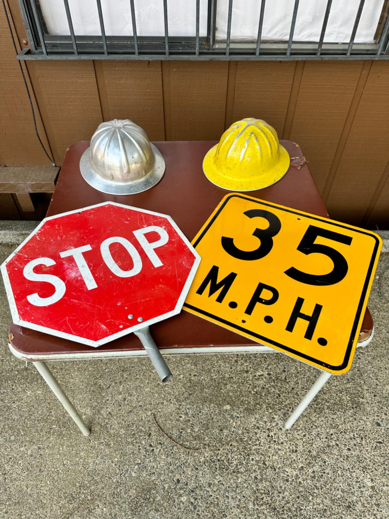 Lot # 2 - Construction Stop & 35 M.P.H. Signs and Construction Hats