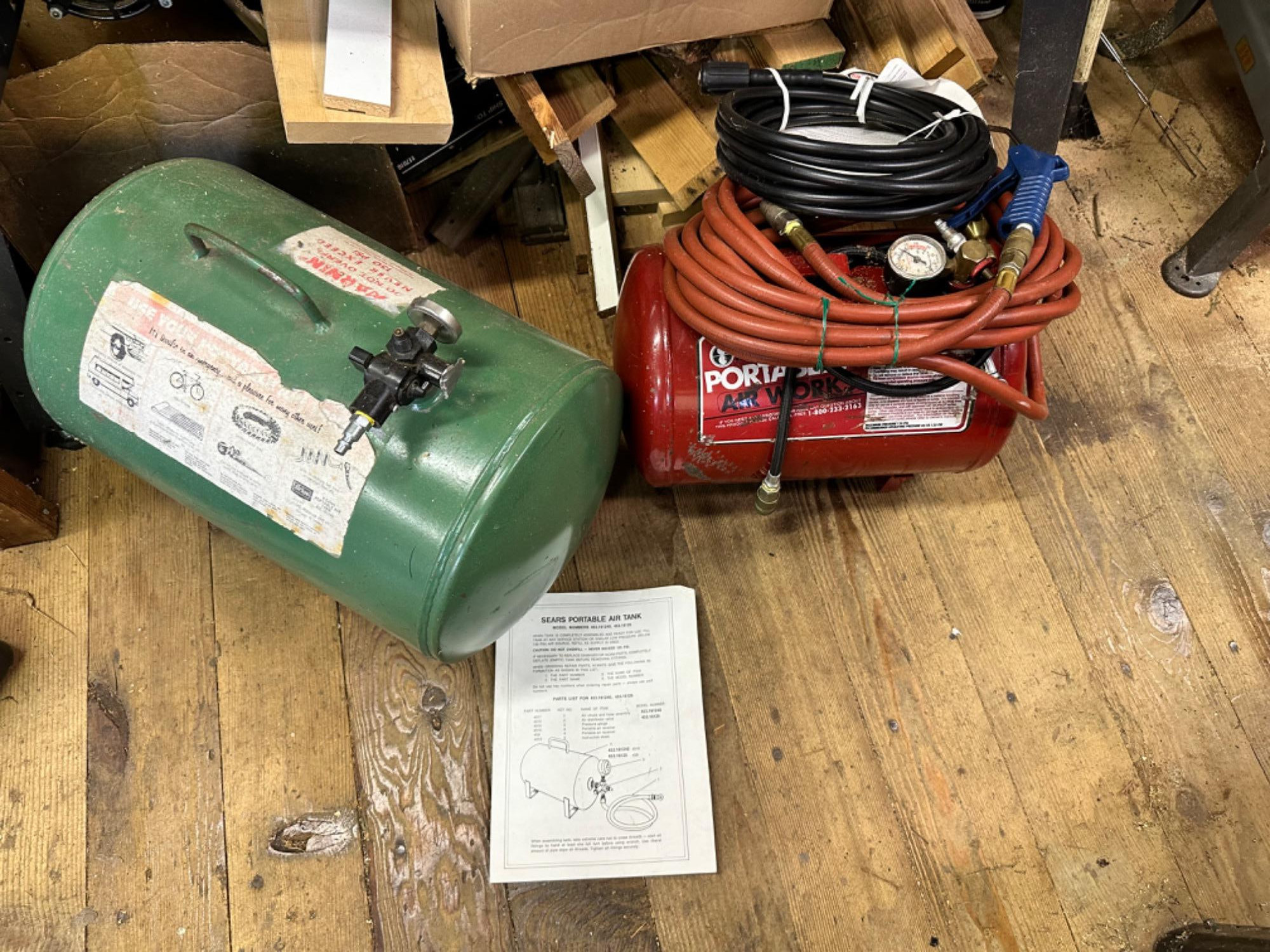 Two Portable Air Tanks. Red one has hose. Not tested.