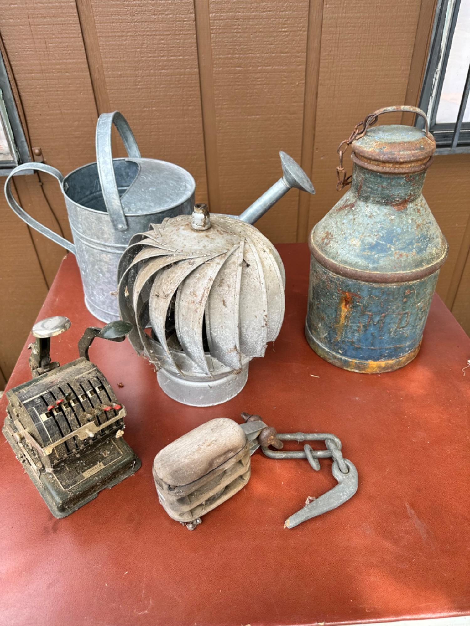Wind Turbine, Block Pulley, Milk Can, Antique Check Writer and More. Milk Can- 17" Tall