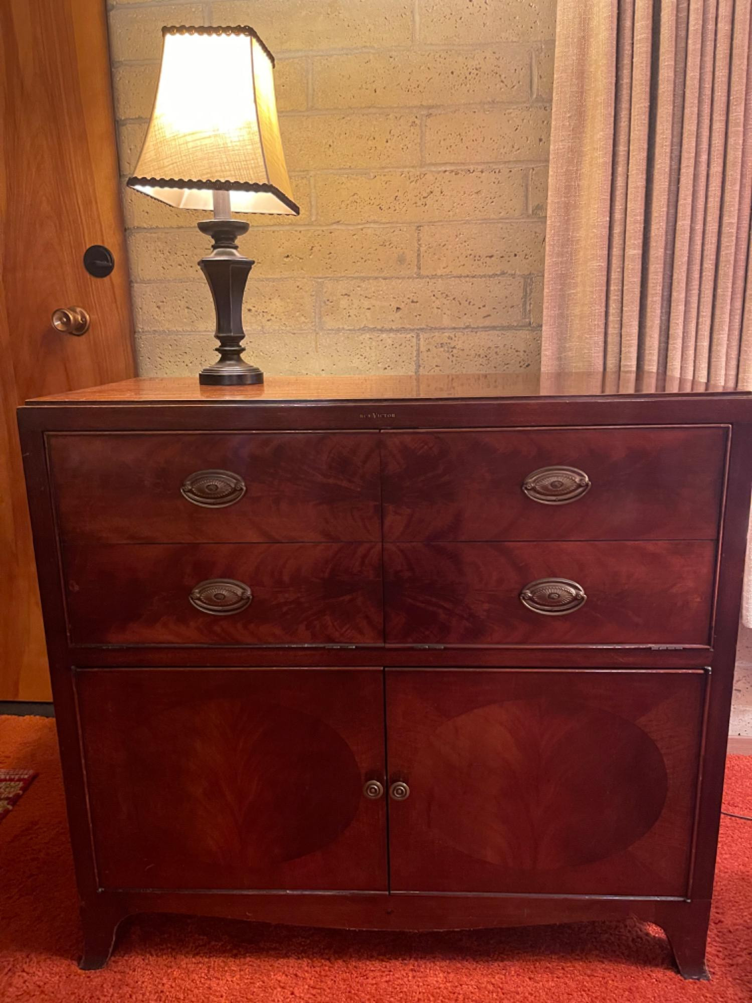 Victrola Radio and Turntable Solid Wood Console- Turntable Works. Records Included. 36L x 33T x 17.5W