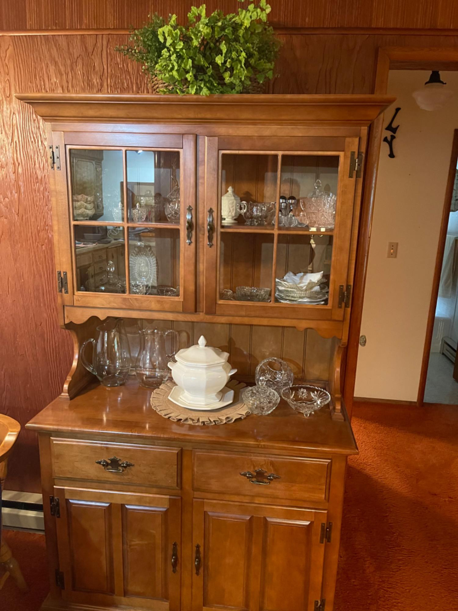 Maple Cottage Country Dining Hutch-All Items Included. Glass and porcelain items included. 42L x 19W x 72T