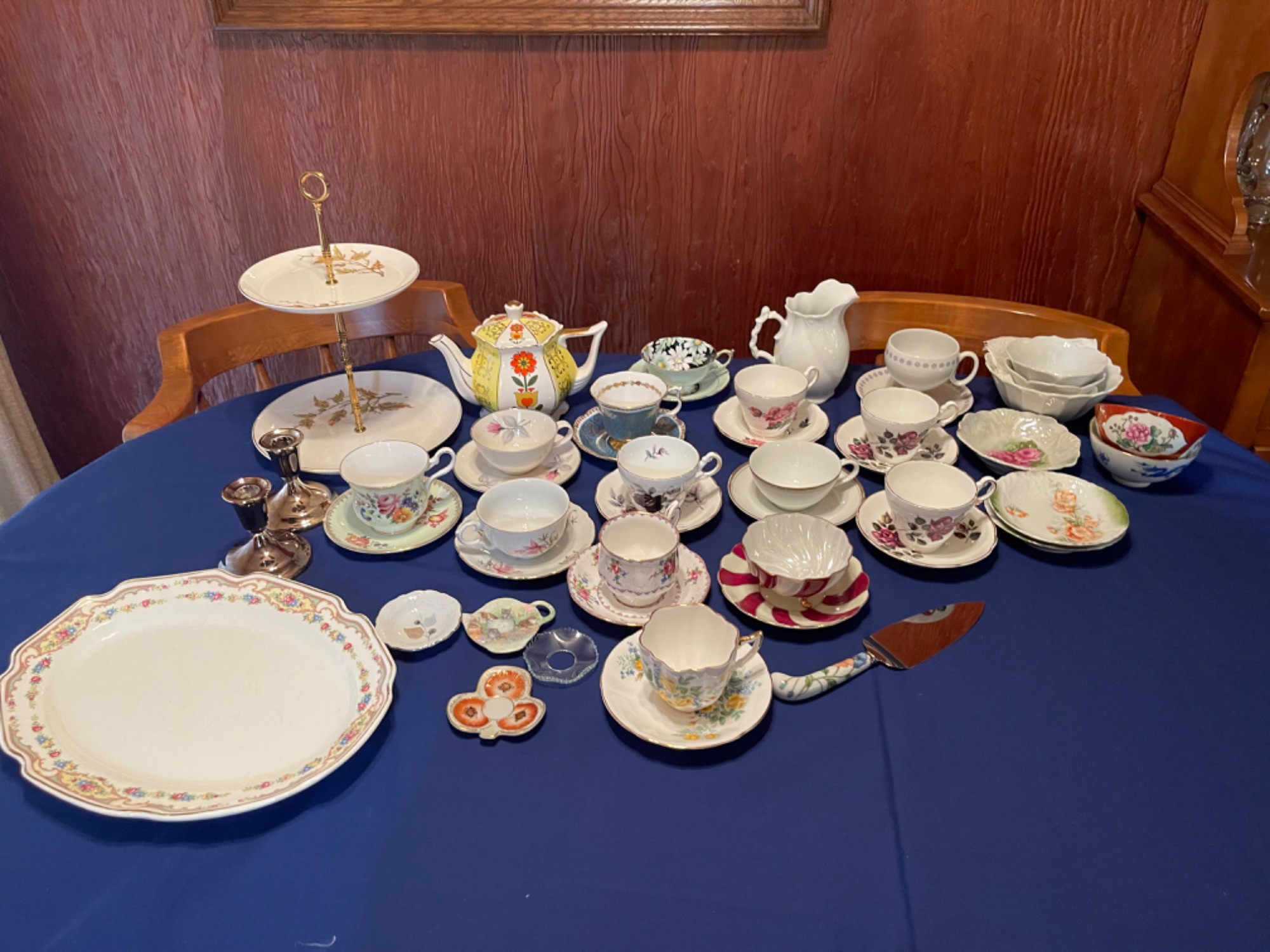 Several Pretty Teacups/Saucers and Serving Dishes.