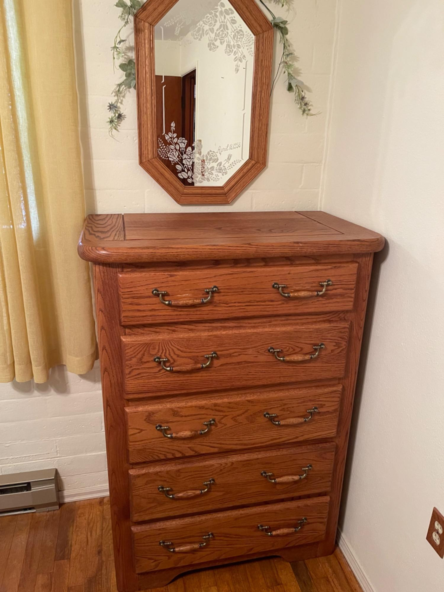 Oak Style Dresser and Mirror. 20 D x 35W x 50T