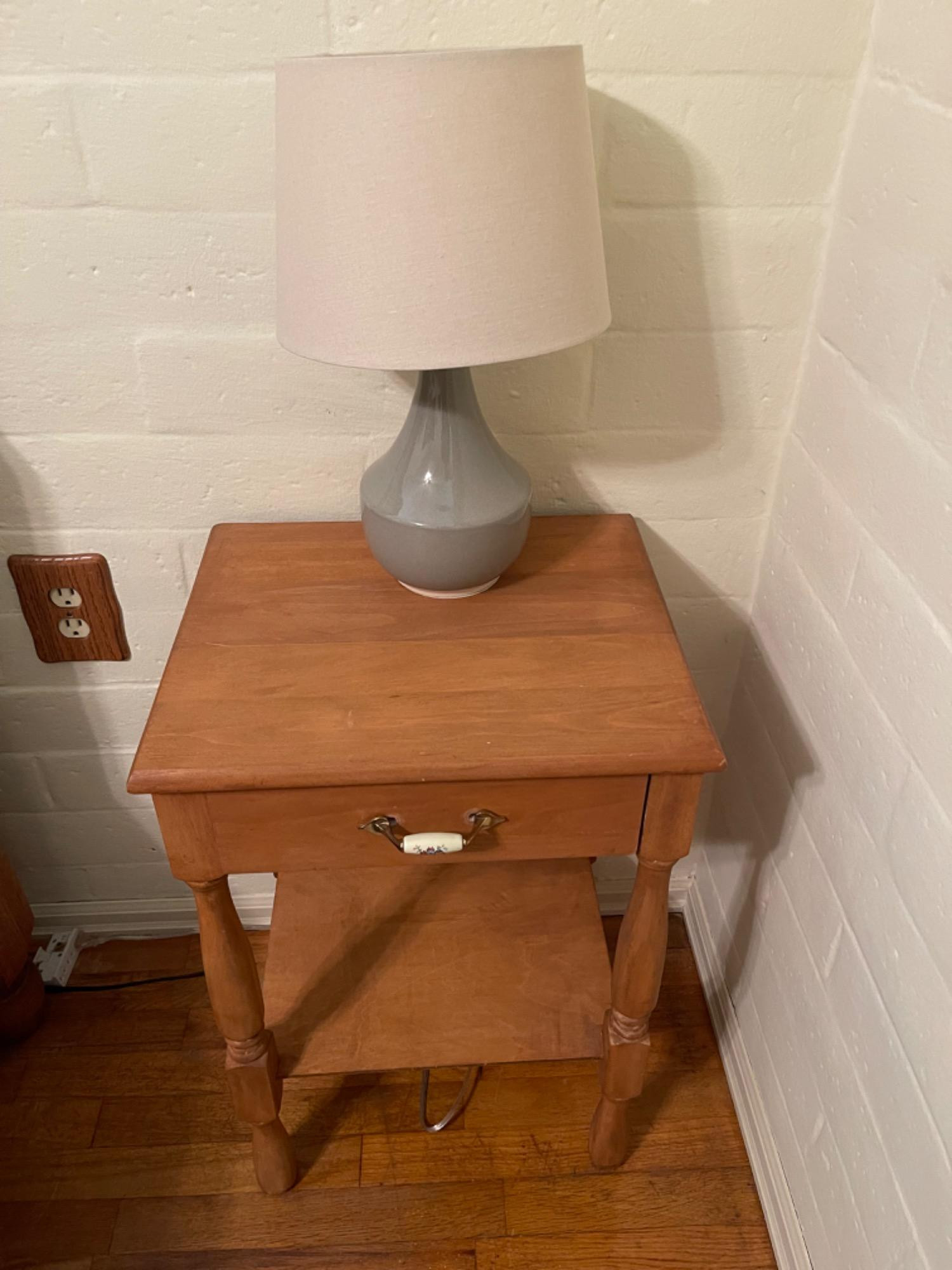 Honey Colored Solid Wood Side Table- dove tail drawers-15L x 17W x 25.5T Small lamp table lamp included.