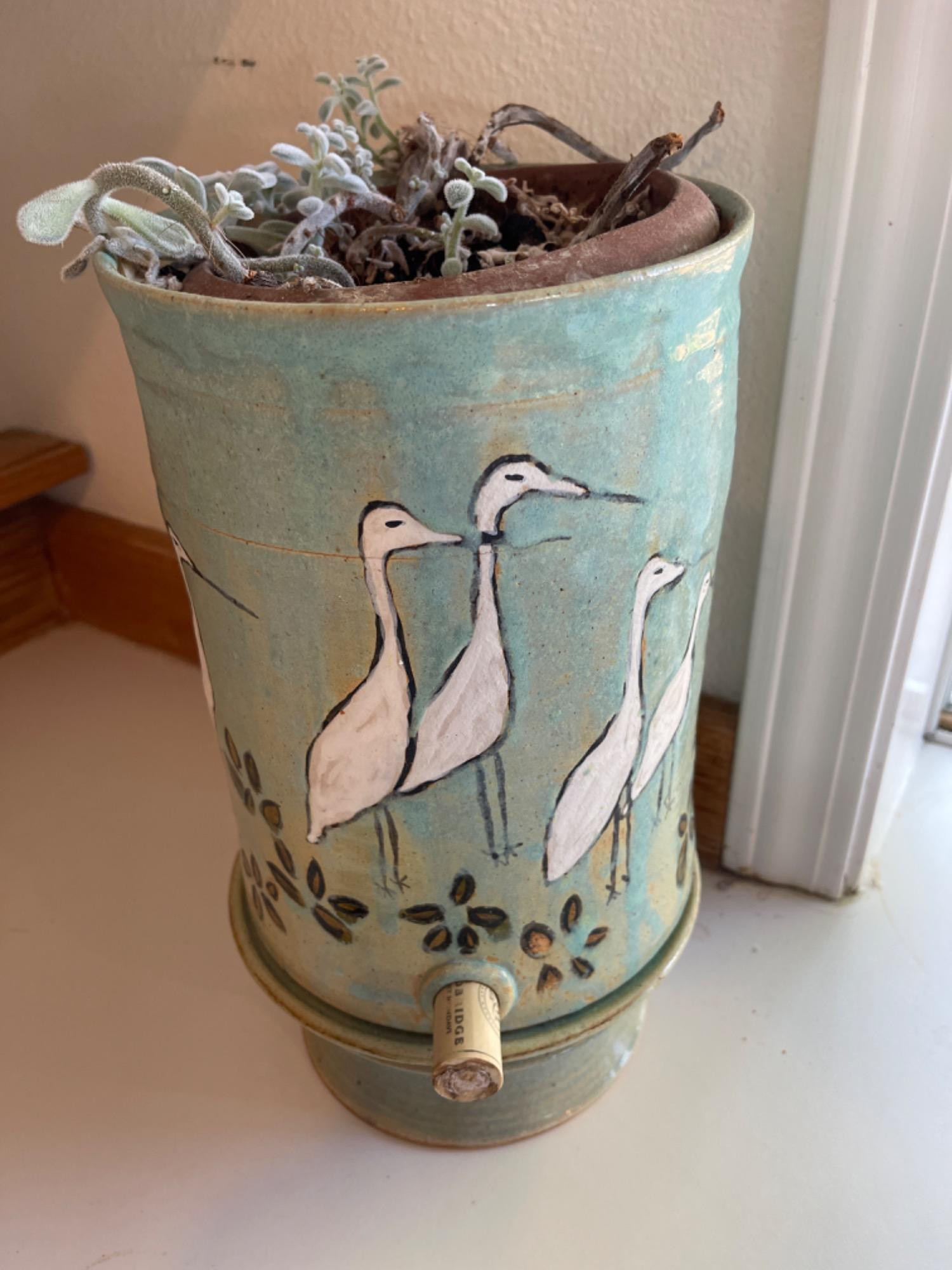 Lot # 29 - Signed Pottery Pot with Cork Plug + Plant