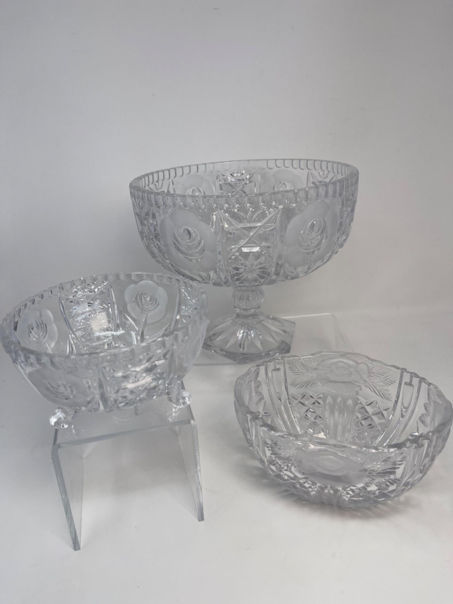 Lot # 35 - Three Lead Crystal Rose Bowls