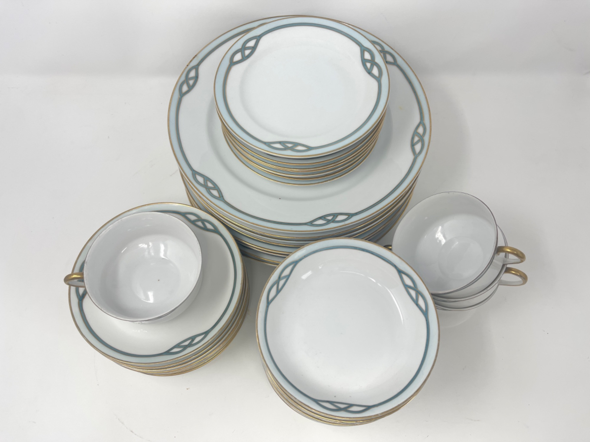 Lot # 40 - Hand Painted Meito China in Light Blue - 38 Piece Set