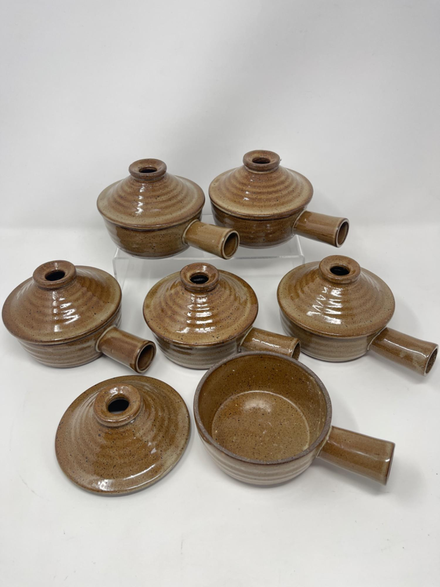 Lot # 68 - (6) Brown Pottery Steamers or French Onion Soup Vented Bowls