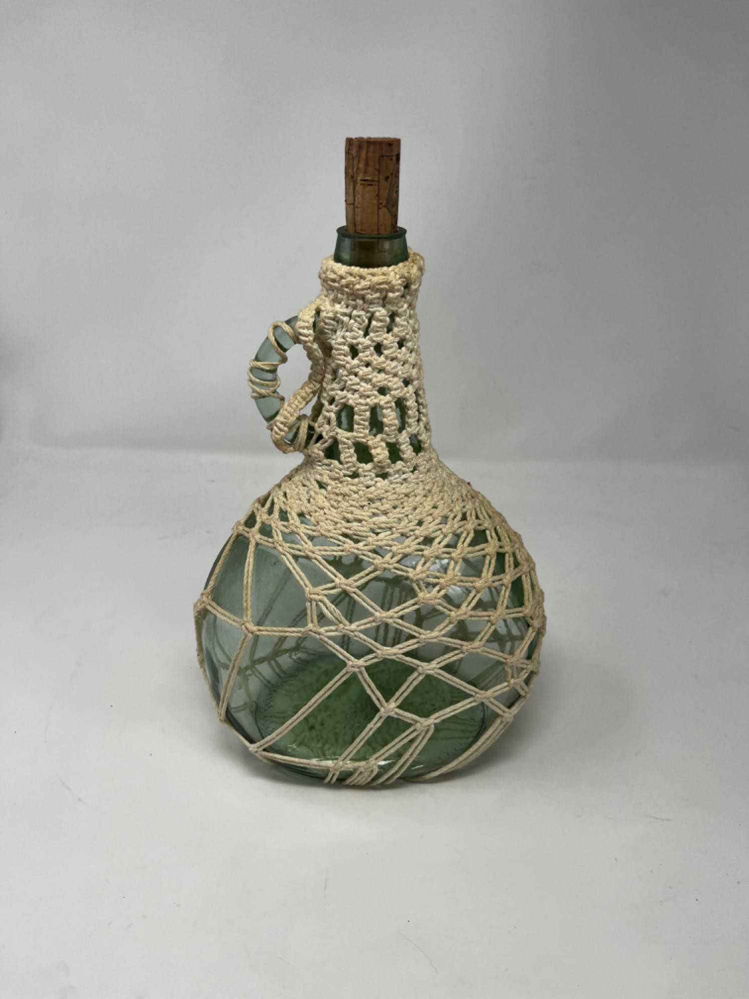 Lot # 96 - Antique Blue/Green Glass Bottle and Macrame Art