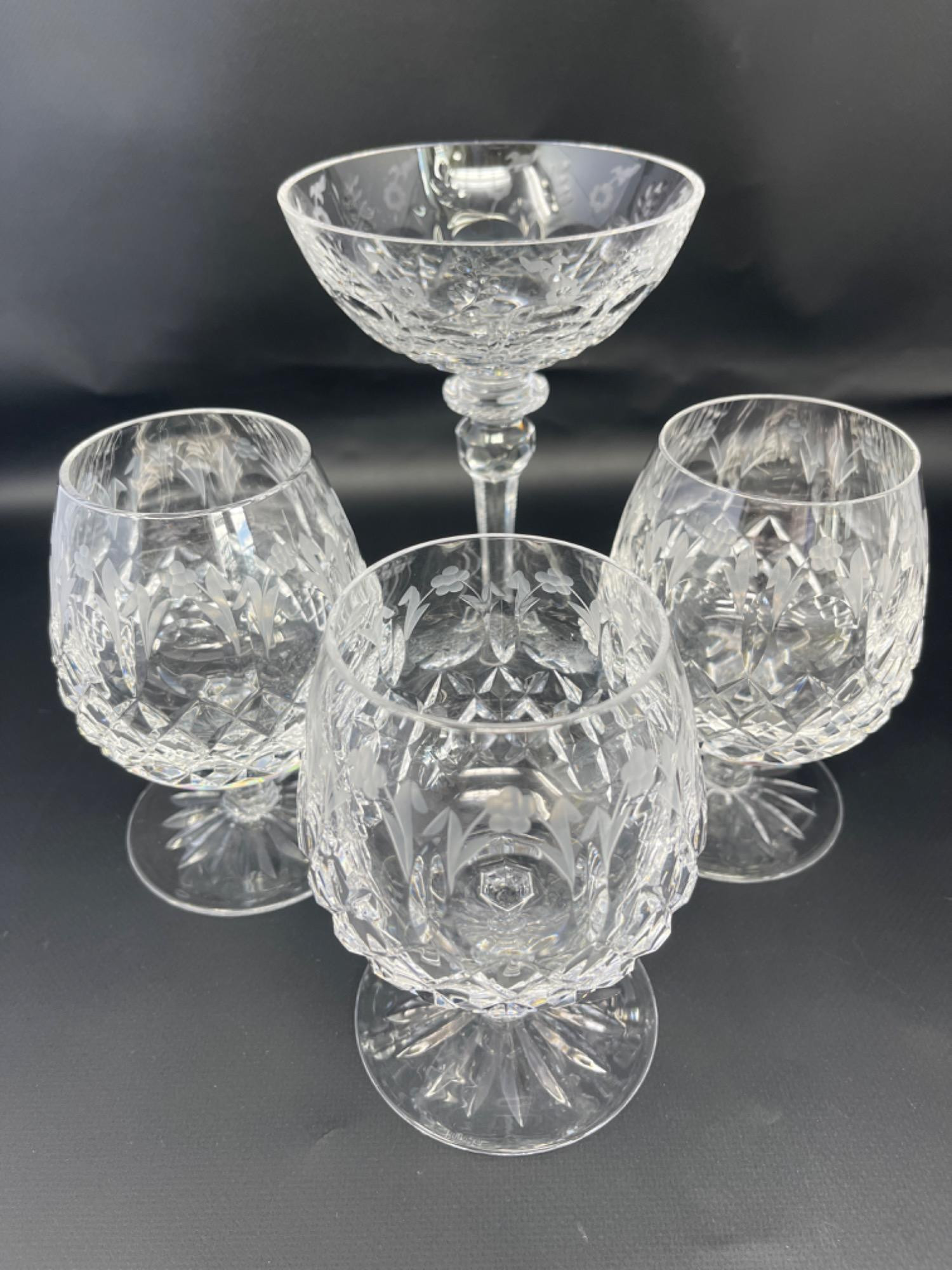 (3) Brandy Glasses: 5.25 inches tall - Two glasses have a small chip (1) Cocktail Glass: 7 inches tall - Not marked Rogaska, however matches the design perfectly