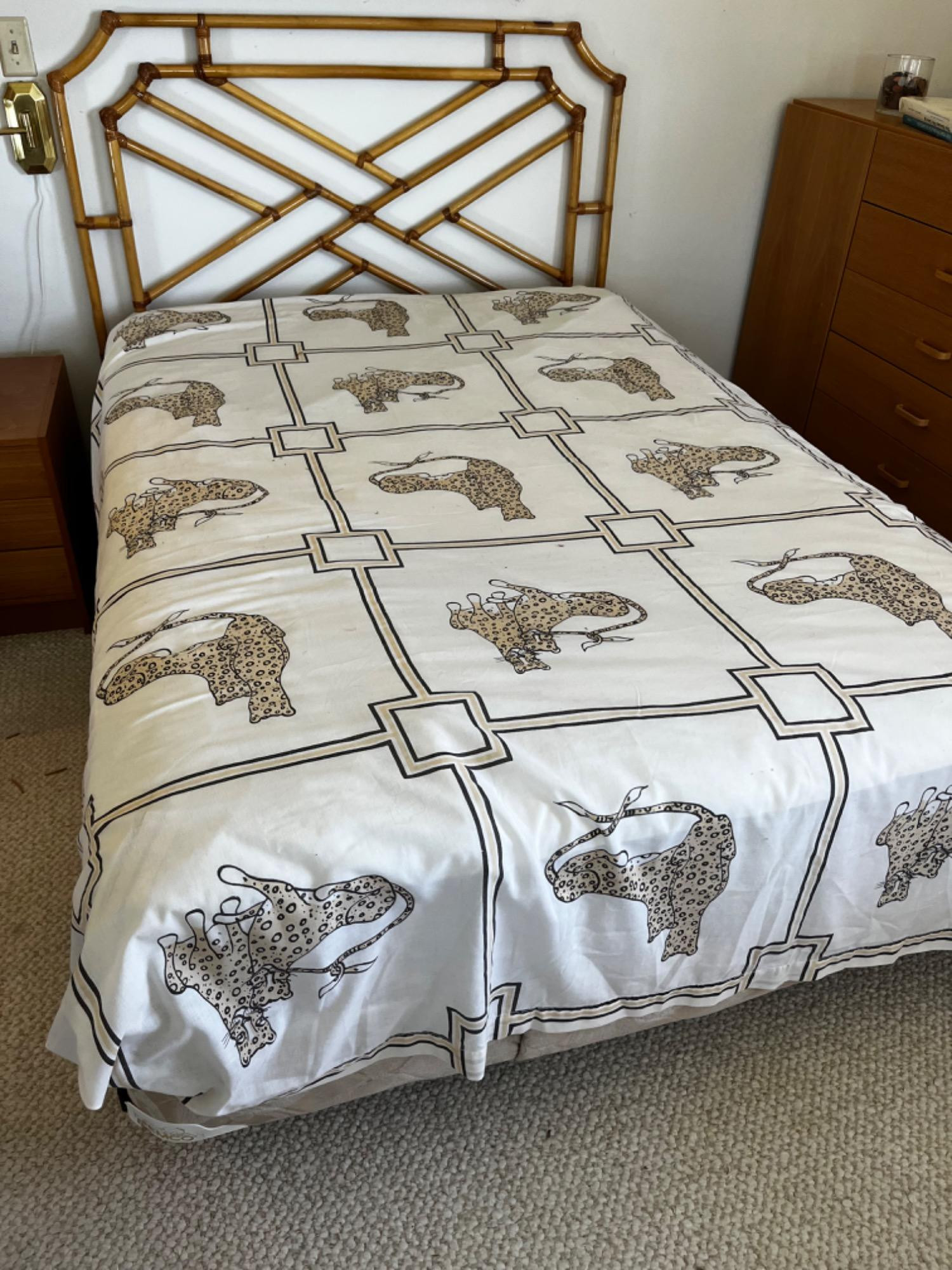 Lot # 131 - Full Size Rattan Headboard, Mattress & Bedding