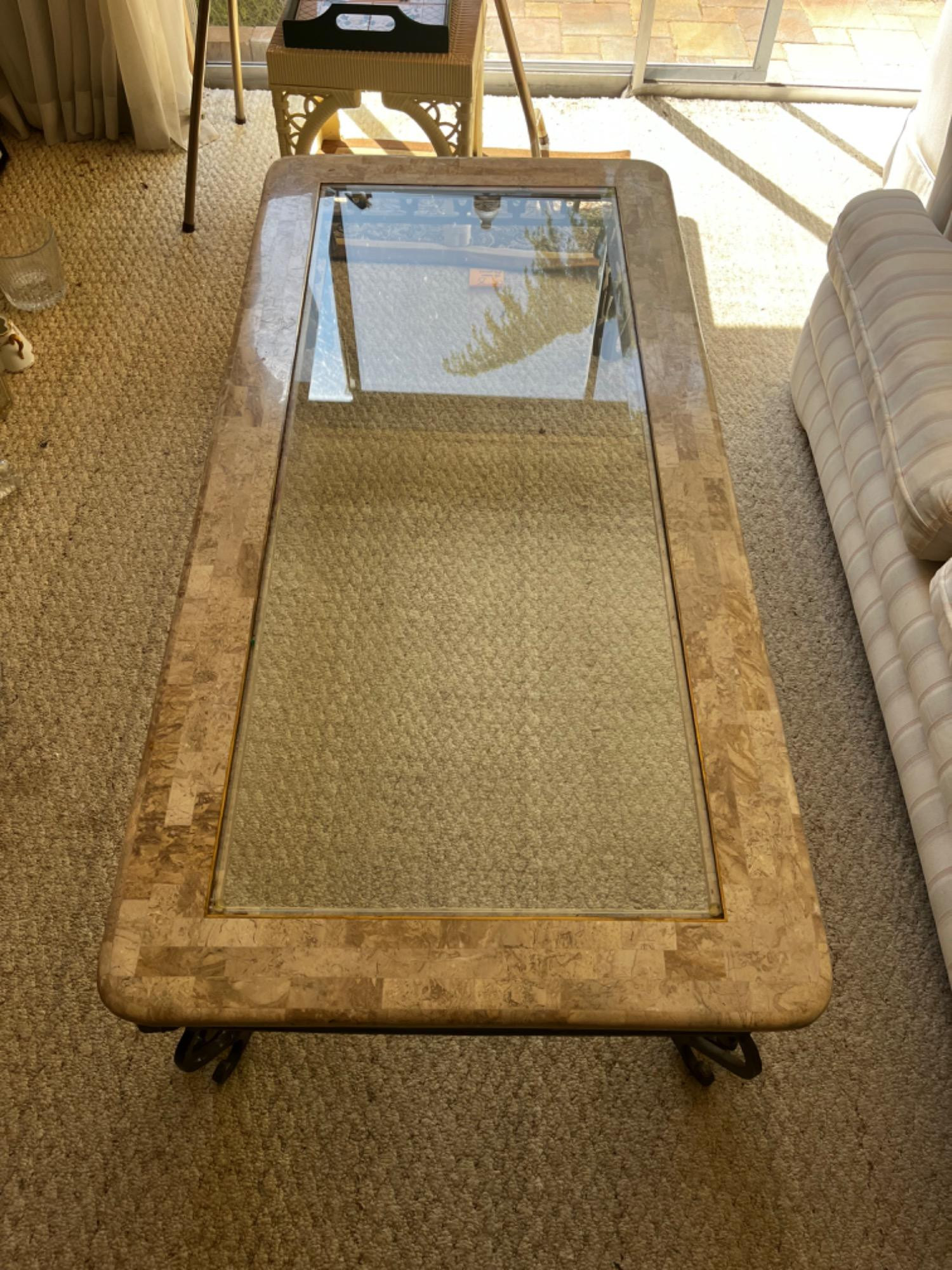 Measurements: 58 inches L x 28 inches W x 16 inches H Details: Table is in pretty good shape. Glass has some scratches but aren’t super noticeable at first glance Bidding on this lot is an agreement that: (1.) You will have 2 capable, able bodied persons to lift and load at a minimum. (2.) You will bring a hand truck and/or any other tools needed to remove this item. If these steps are not followed your item will be forfeit and no refund given.