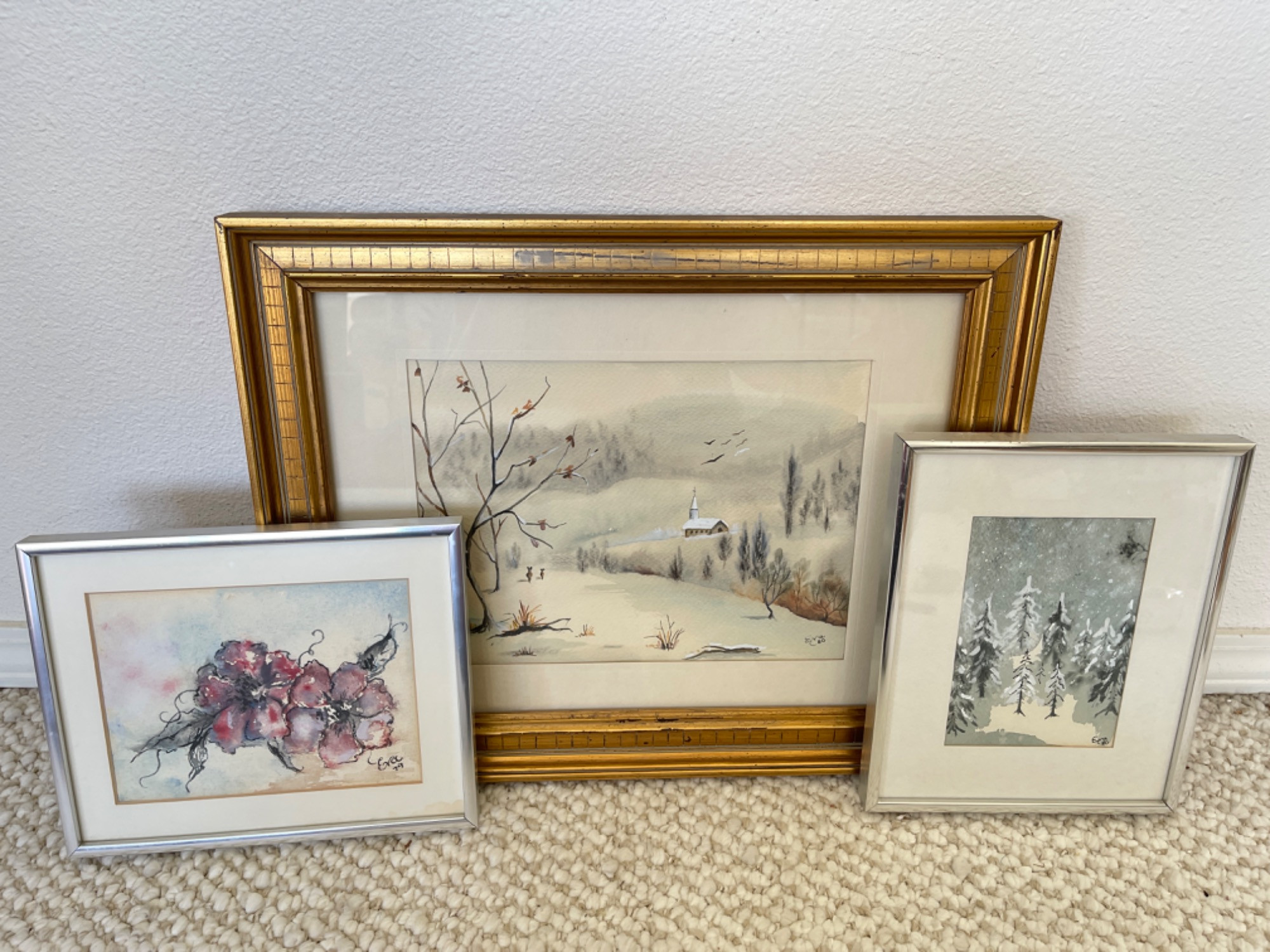 Lot # 175 - (3) Original 1979-1980 Framed Watercolor Painting Signed Eva