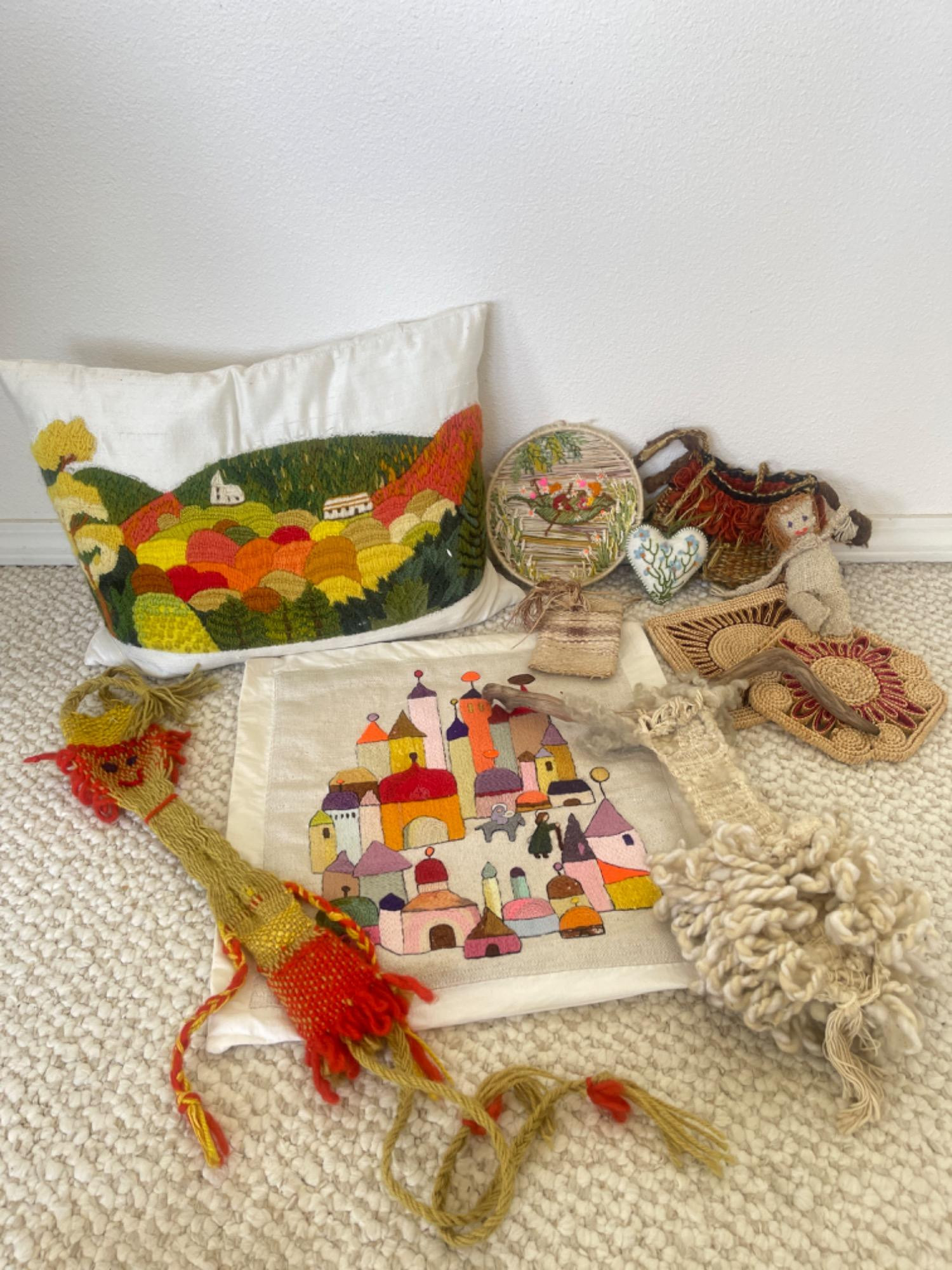 Lot # 182 - Hand Made Woven and Knit Art Pieces - Pillow Cases, Hanging Art +