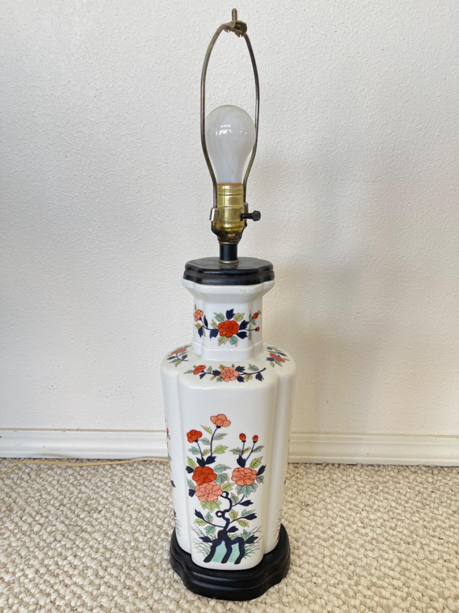 Lot # 193 - Vintage Hand Painted Porcelain Floral Lamp