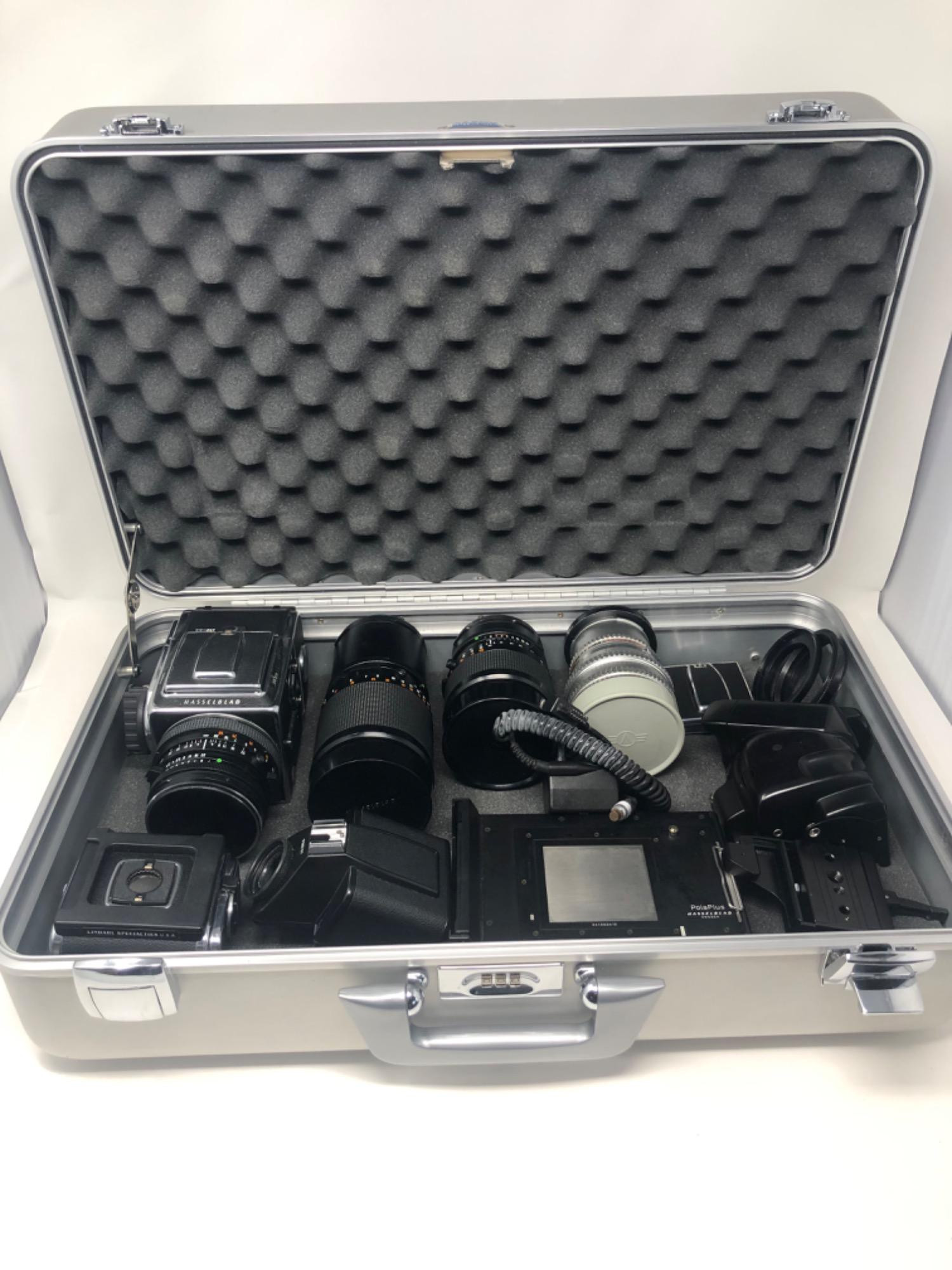 Hasselblad Camera Equipment and Case - $5,000 Value Lot Includes: - Hasselblad 503CW Camera - Hasselblad Lens (Carl Zeiss Planar 2.8/80) - Hasselblad Zoom Lens (Carl Zeiss Sonnar 4/150) - Hasselblad Lens (Carl Zeiss Sonnar 5.6/250) - Hasselblad Synchro - Compur Lens (Carl Zeiss Sonnar 1:4 F=150mm) - Hasselblad Winder - Hasselblad Filmback - Hasselblad PME51 Meter Prism Finder - Hasselblad Chrome Waist Level Finder - Hasselblad Tripod Quick Coupling - Hasselblad Camera Flash Adapter (SCA 390) - Hasselblad Polaroid PolaPlus Instant Film Back - Padded Carrying Case With Combination Lock - Bellows Lens Hood ELIGIBLE FOR SHIPPING