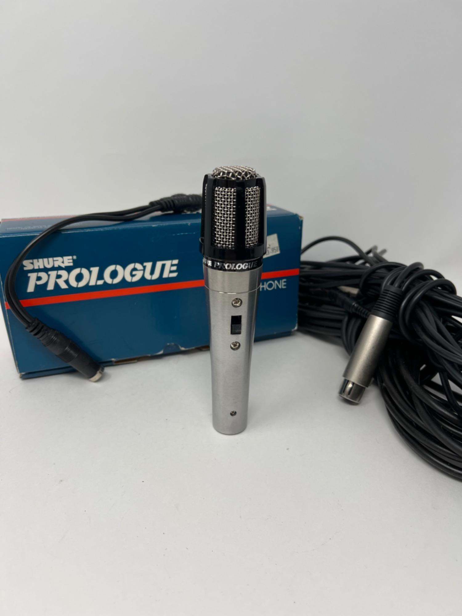 Shure Prologue Dynamic 10L LO Z with on and off switch and microphone cords along with a splitter extension. Microphone is 6.5” long. Works. ELIGIBLE FOR SHIPPING