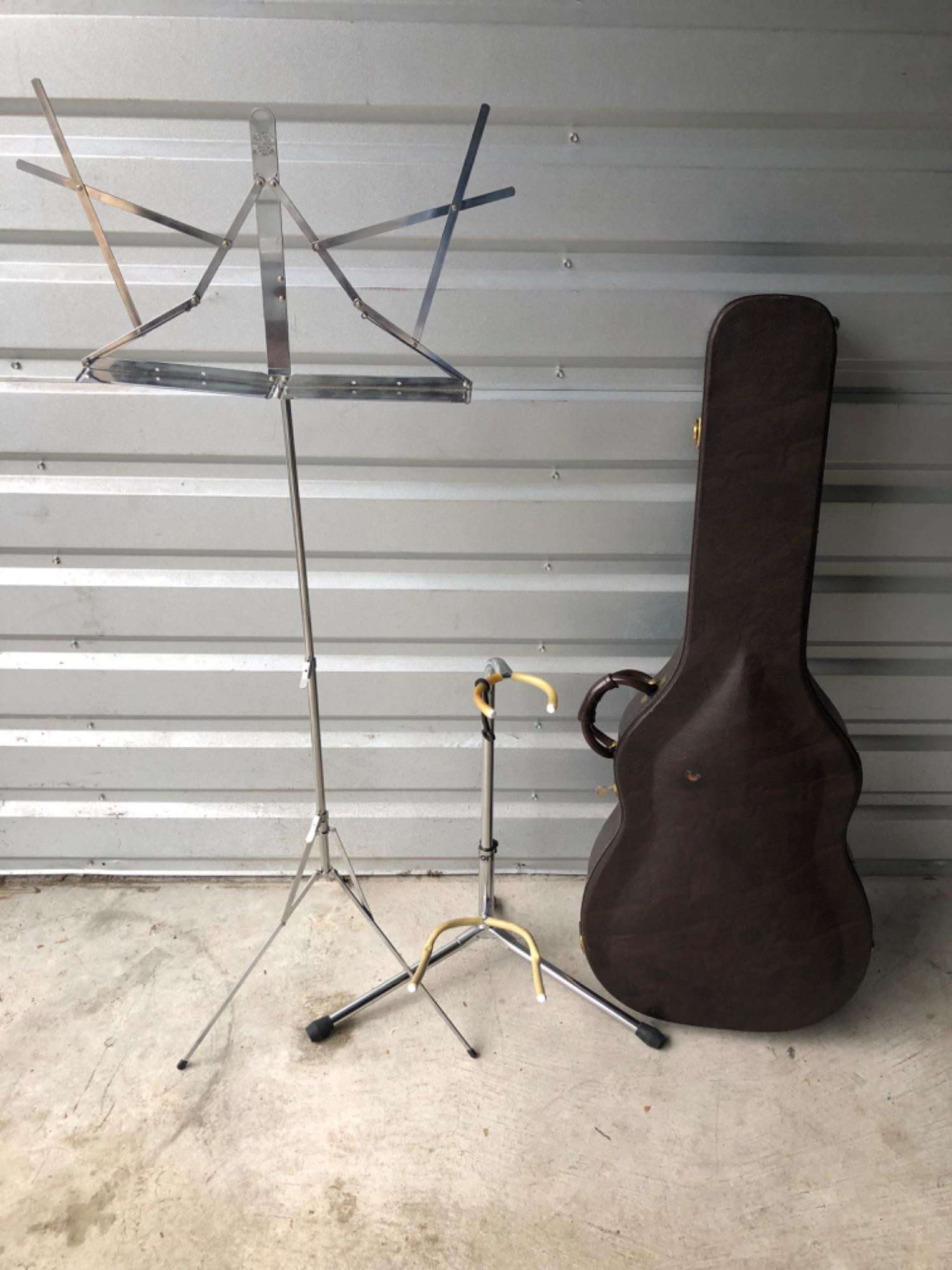 Lot # 20 - Guitar Package - Case - Music Stand - Guitar Stand
