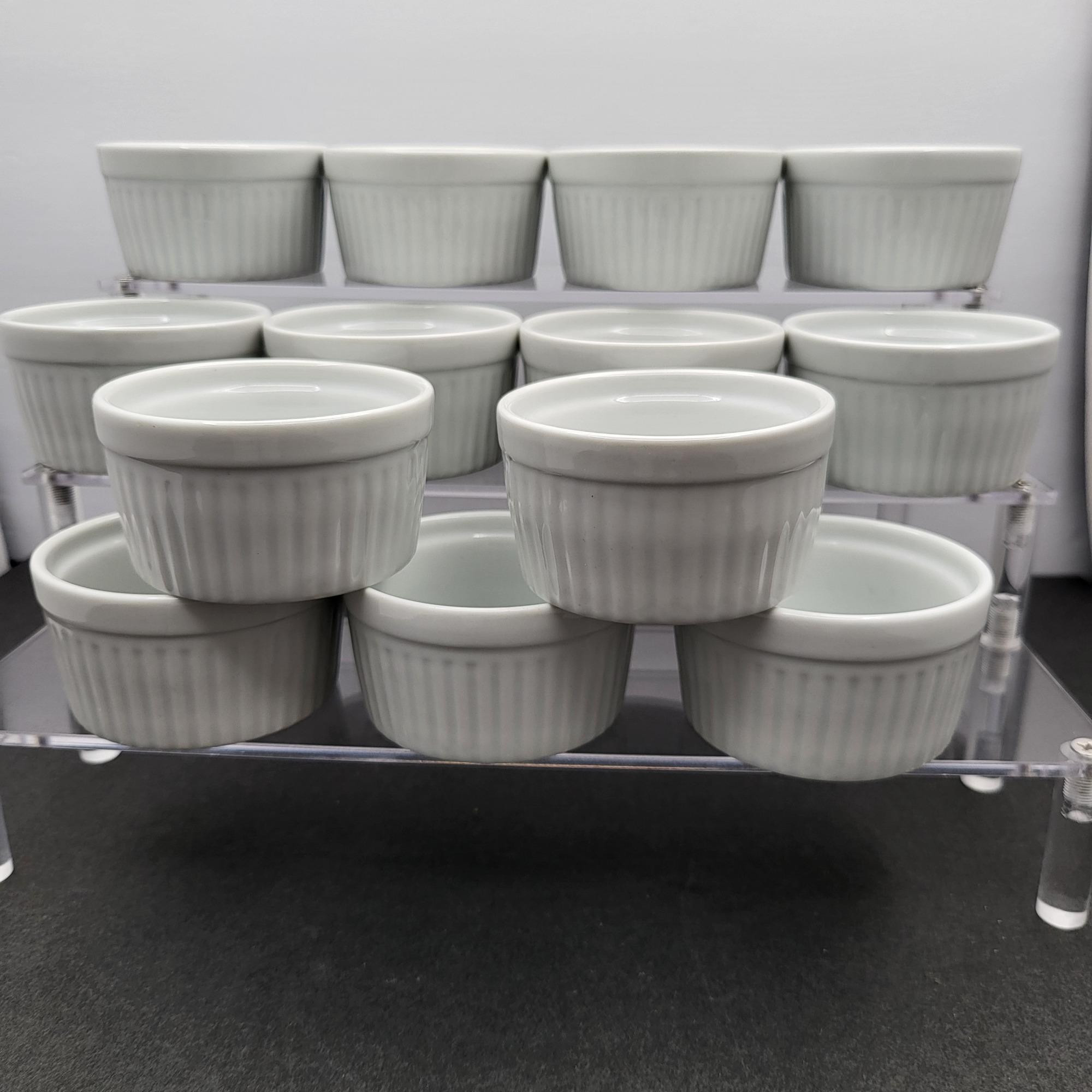 (12) 3" white ribbed ceramic ramekins. Made in Brasil.