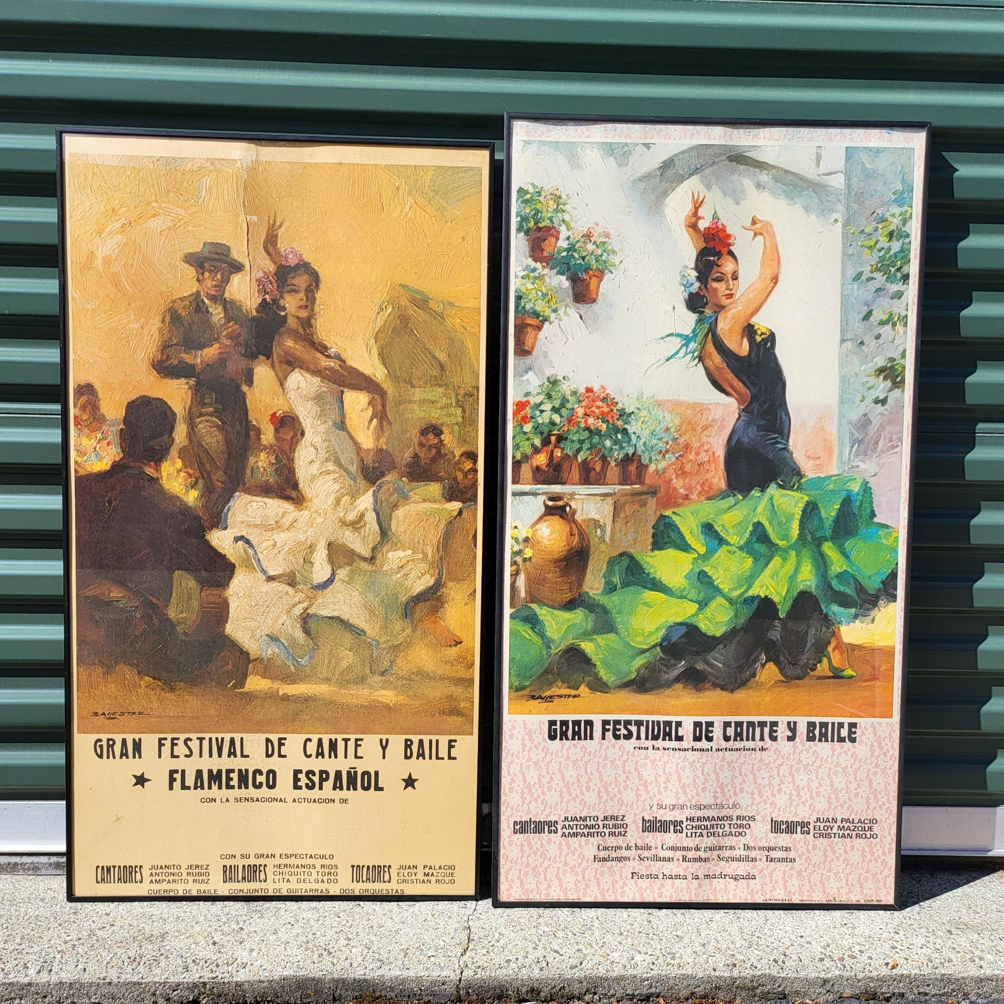 Two 20" x 37" Gran Festival poster print wall art of Flamenco dancers, 1970's-80's.