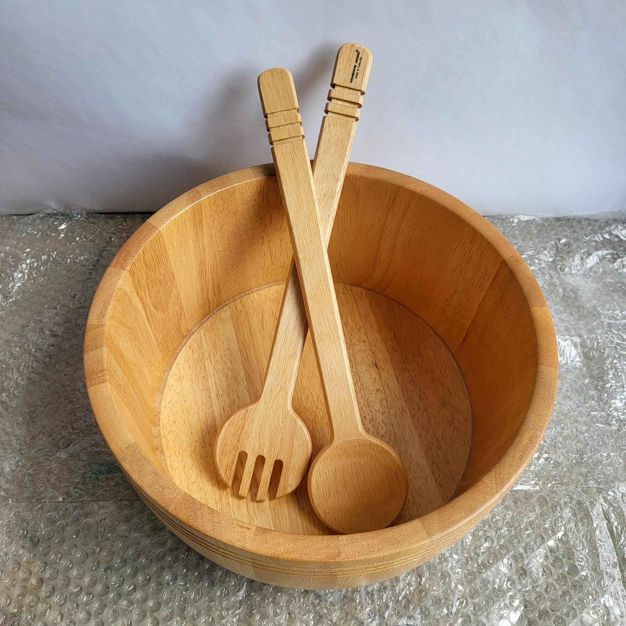 Vintage, NIB 12" beechwood salad serving bowl with pair of 14" server utensils. Made in Thailand. Natural wood items like this need special care, though easy steps to maintain its beauty. ELIGIBLE FOR SHIPPING
