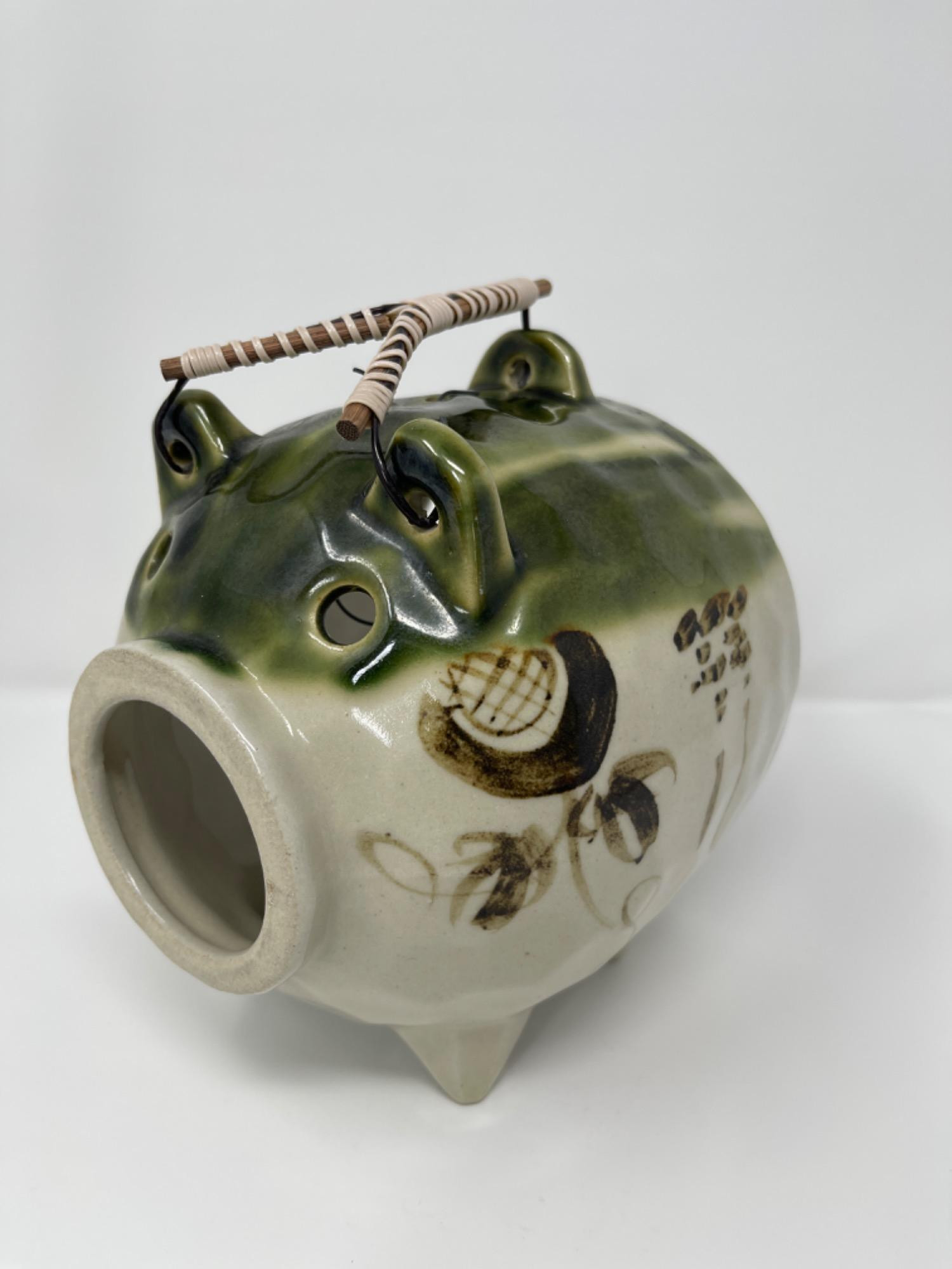 Lot # 14 - Glazed Pig Pottery Japanese Mosquito Coil Holder