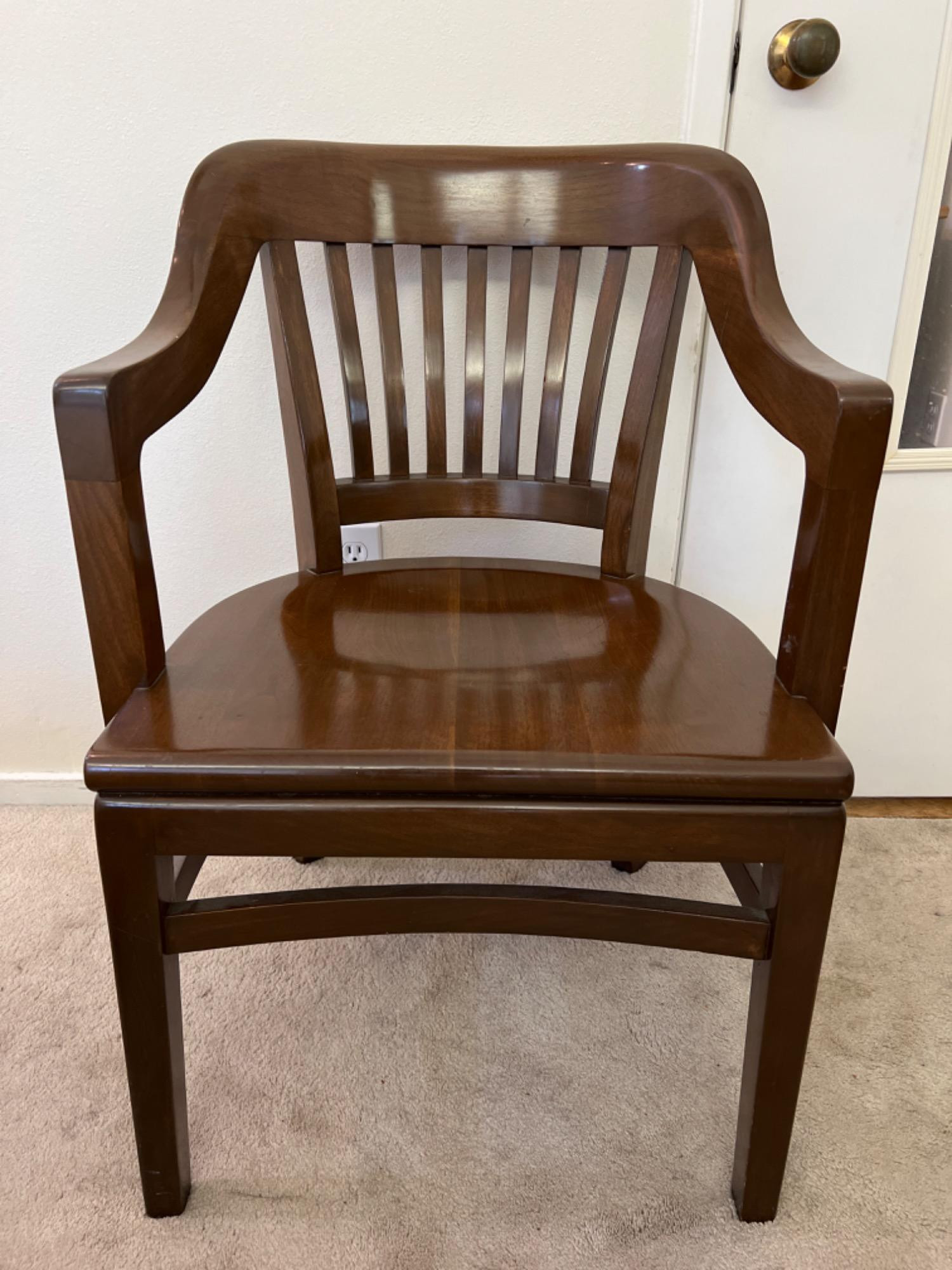 Chair measures: 20.5” wide x 19” deep x 33” tall (17” to seat). Made by W. H. Gunlocke Furniture Company.