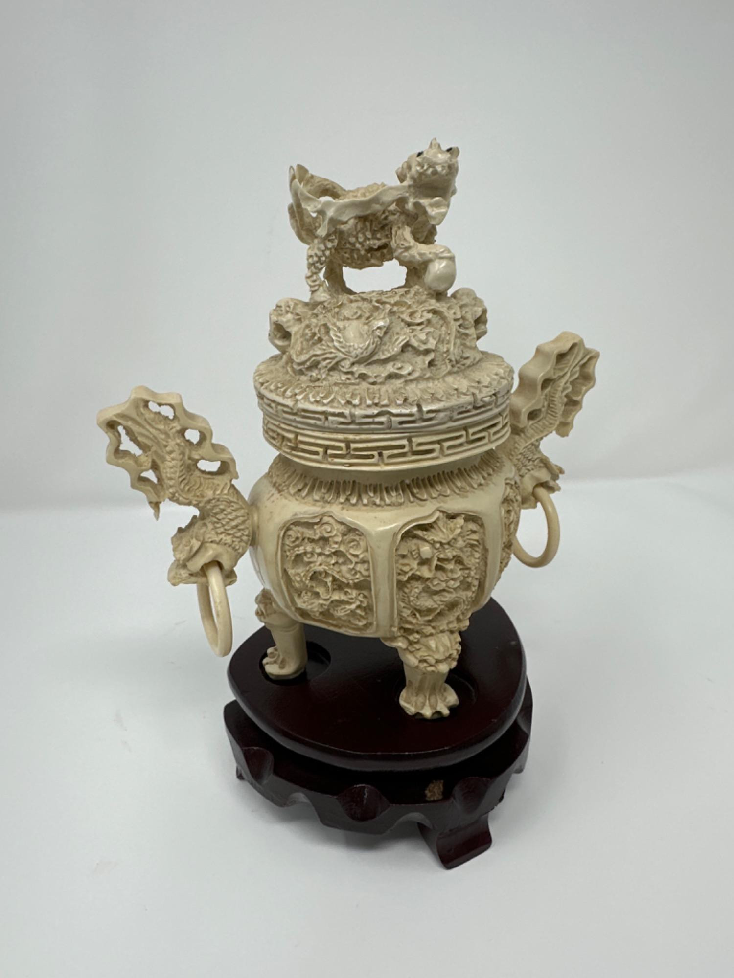Lot # 51 - Vintage Intricately Carved Resin Incense Burner on Stand