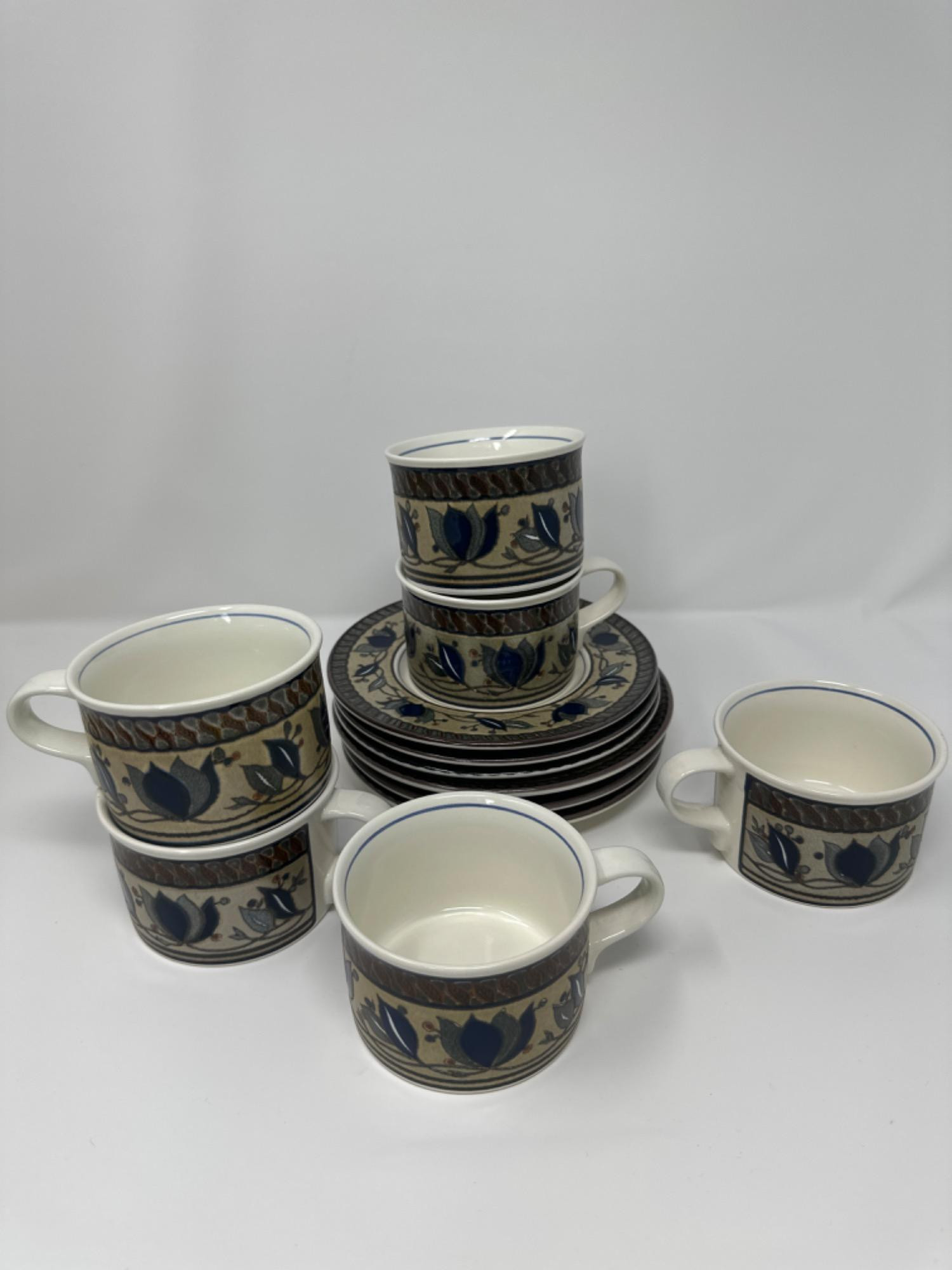 Mikasa Intaglio Arabella- Six Cups/Saucers Plates- 6.5” Cups- 2.5T x 3.5W