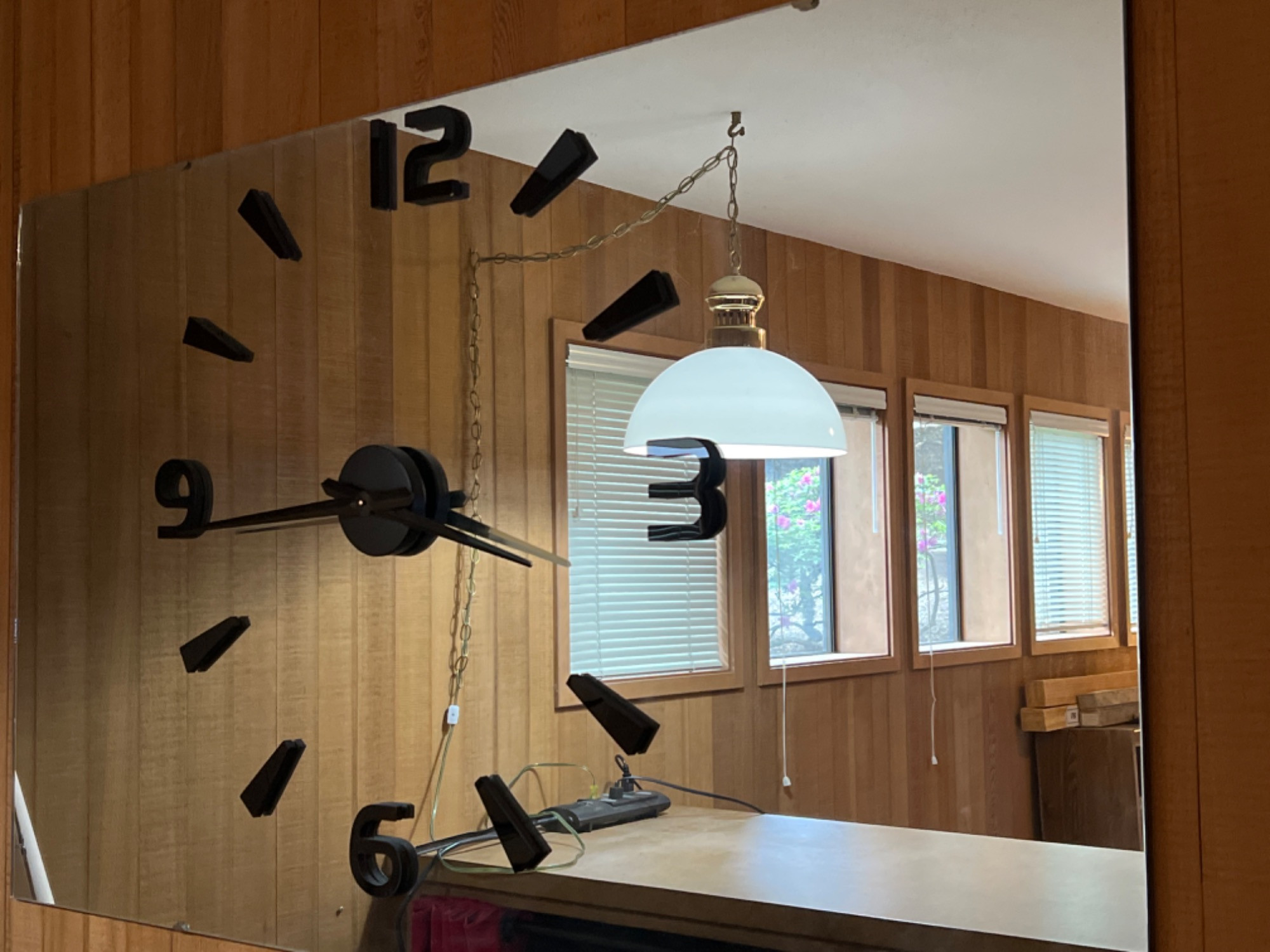 Mirror size: 61” long x 36” tall. 4” tall numbers Fastened to wall - buyer removes.