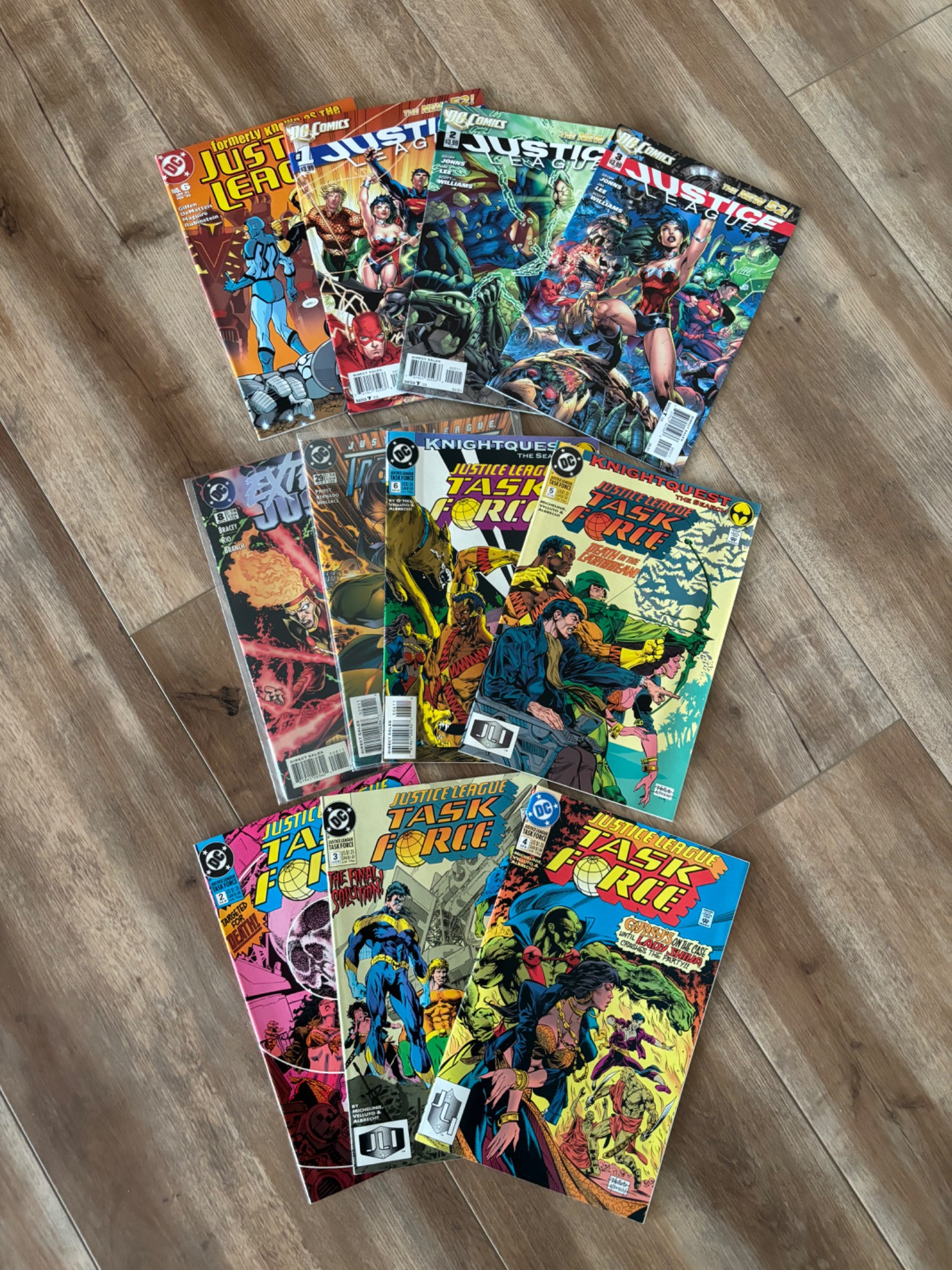 Variety pack of DC Comics Conditions vary, but they are all good for reading with excellent coloring! Includes: - Justice League Task Force issues 2-6 and 29 - Justice League The New 52 issues 1-3 - Formerly Know as the Justice League issue 6 - Extreme Justice issue 8