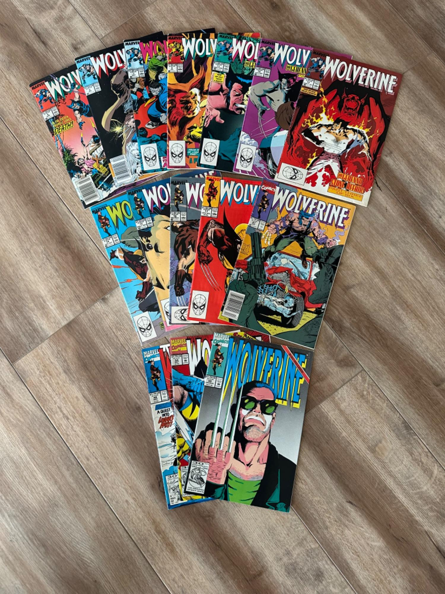A collection of Marvel's Wolverine comic book series. Some of the most acknowledged comic book covers in the 90's era! A majority of the comics are in relatively good shape. Although, Wolverine #17 does have a dent that runs through the entire bottom of the comic. Despite that, they are all presentable and ready to be read!