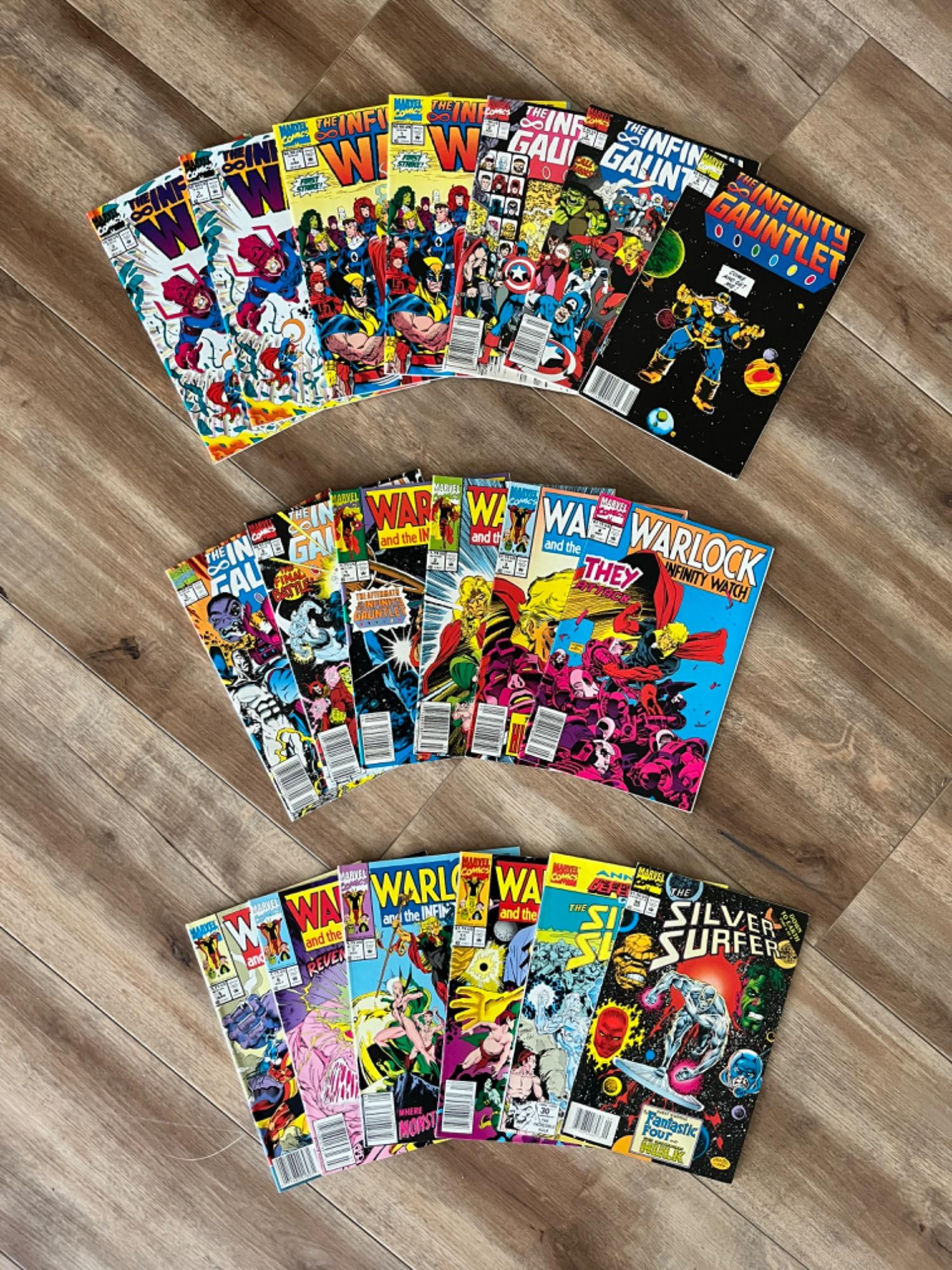 A collection of various issues from the Warlock, Infinity War, and Infinity Gauntlet series! Conditions vary, but they are all good for reading with excellent coloring!